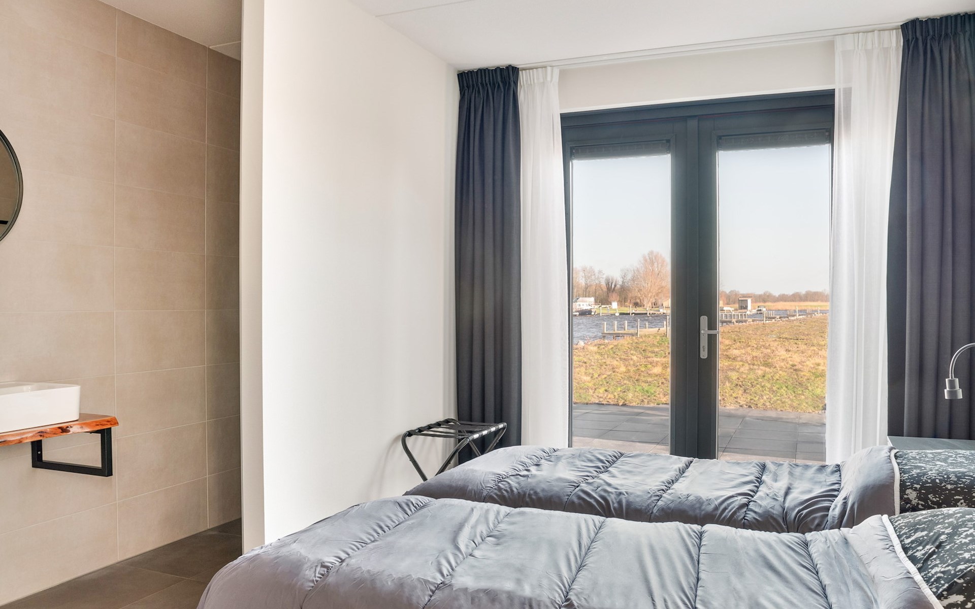 Im Summio Waterpark Zwartkruis befindet sich am Innenhafen die Watervilla Roerdomp Wellness Plus 10, die für bis zu 10 Personen geeignet ist. Diese großzügige Wasservilla mit privater Sauna und Whirlpool im Freien verfügt über 5 Schlafzimmer und 4 Badezimmer, verteilt auf 2 Etagen.