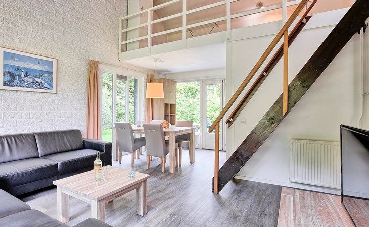 Der Doppelhaus-Bungalow 4B im Summio Waterpark De Bloemert ist für maximal 4 Personen geeignet. Der Bungalow liegt im Waldpark und verfügt über 2 Schlafzimmer und 1 Badezimmer, verteilt auf 2 Etagen.