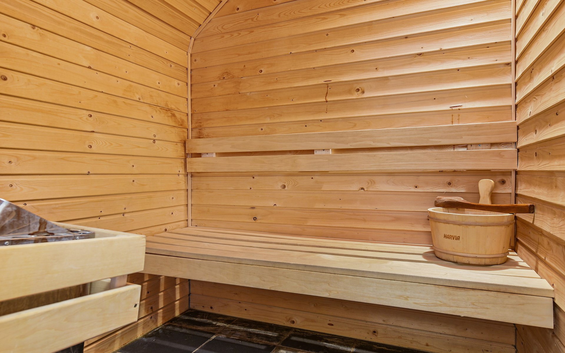 In der zweiten Etage gibt es 2 Schlafzimmer und 1 Badezimmer. In beiden Schlafzimmern stehen 2 Einzel-Boxspringbetten. In einem der Schlafzimmer steht eine Sonnenbank. Das Badezimmer verfügt über eine Duschkabine und ein Doppelwaschbecken. Dieses Badezimmer verfügt auch über eine Sauna.