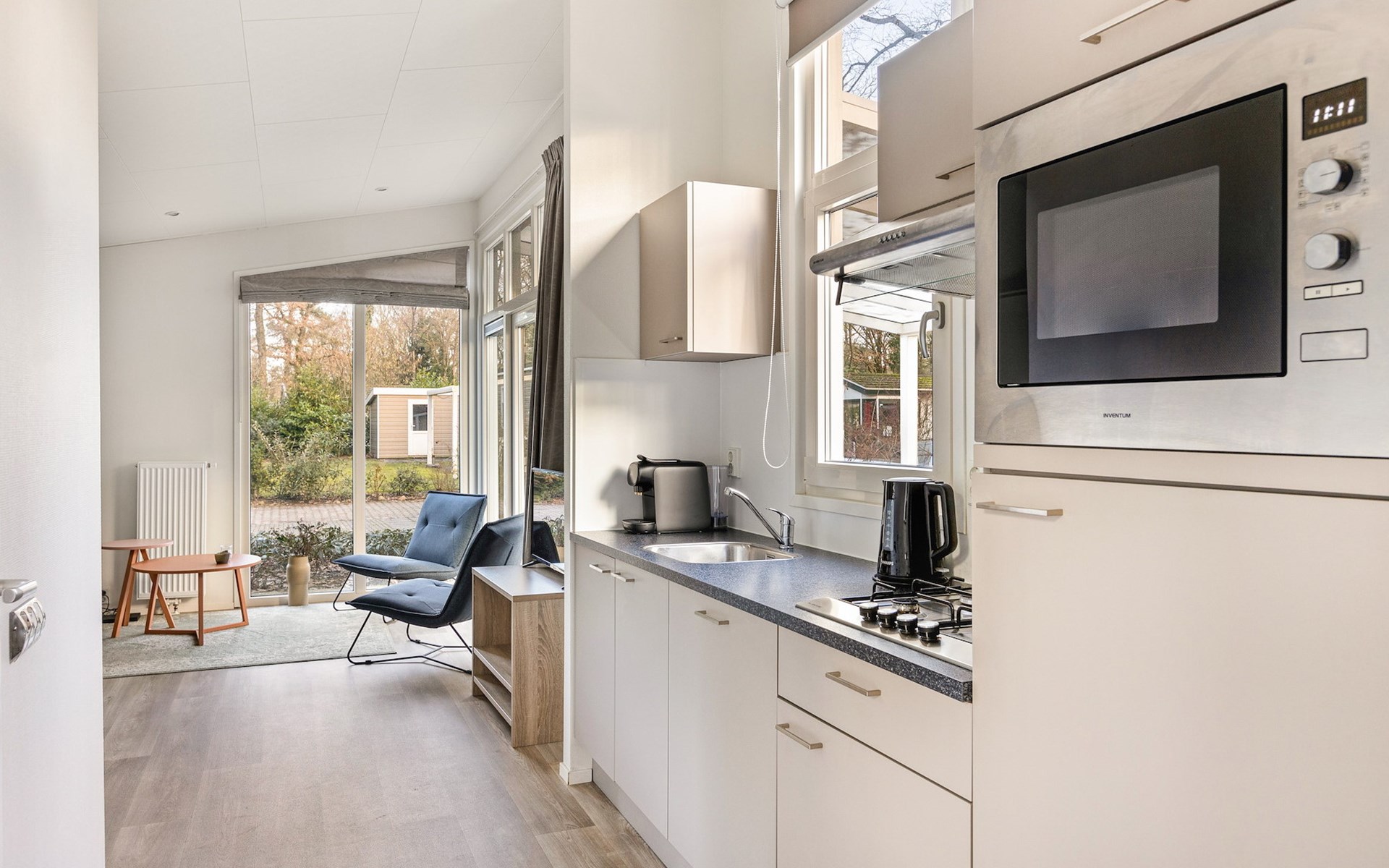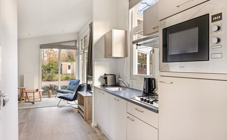 Der freistehende Type A Chalet Komfort 4 Boterbloem auf Summio Landgoed Het Grote Zand ist für bis zu 4 Personen geeignet. Dieser luxuriöse Bungalow verfügt über 2 Schlafzimmer und 1 Badezimmer.