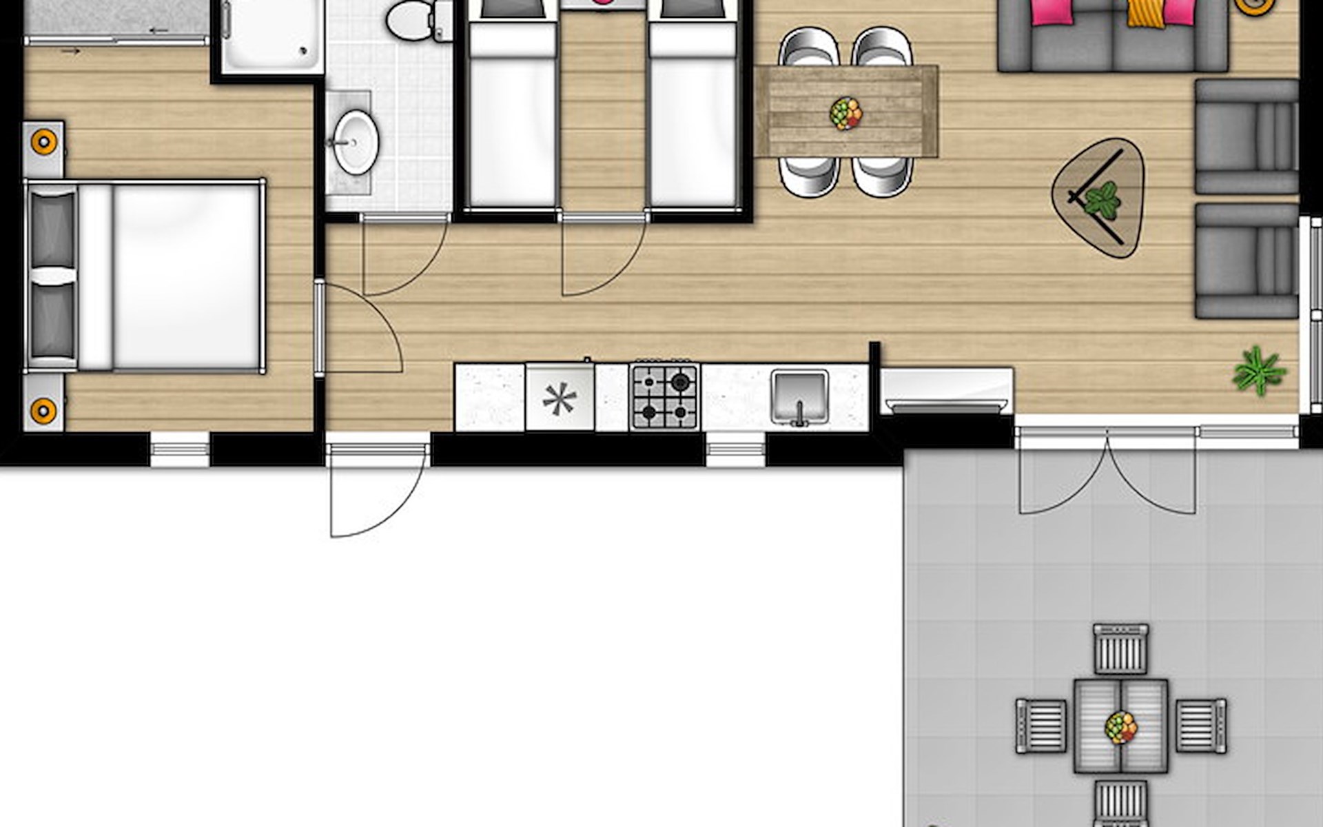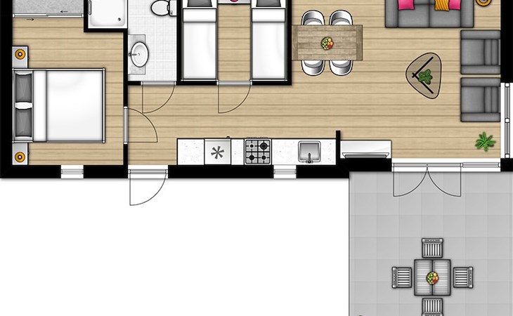 Die Unterkünfte können anders eingeteilt und eingerichtet sein. Grundrisse und Abbildungen dienen als Beispiele.