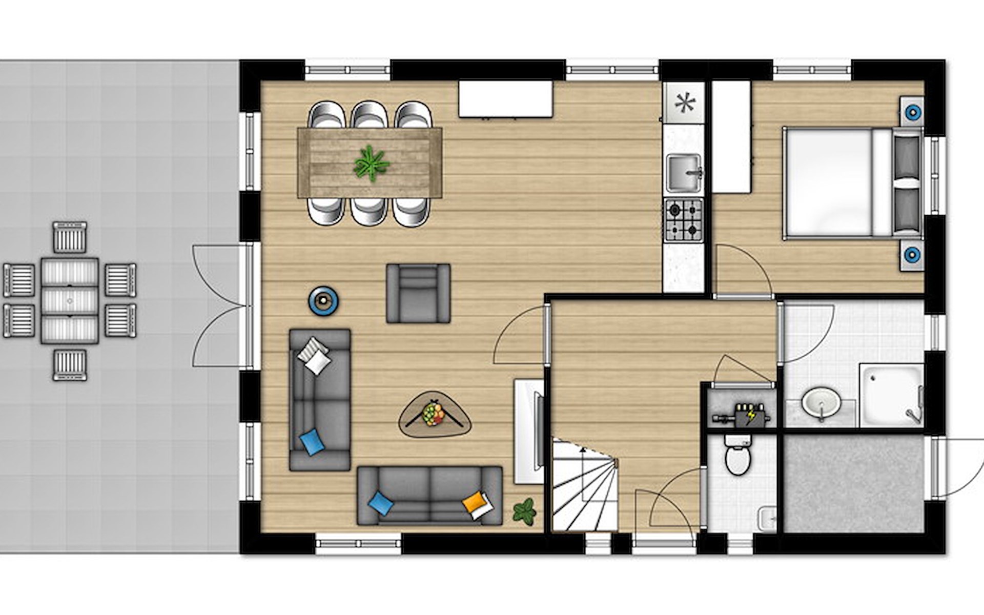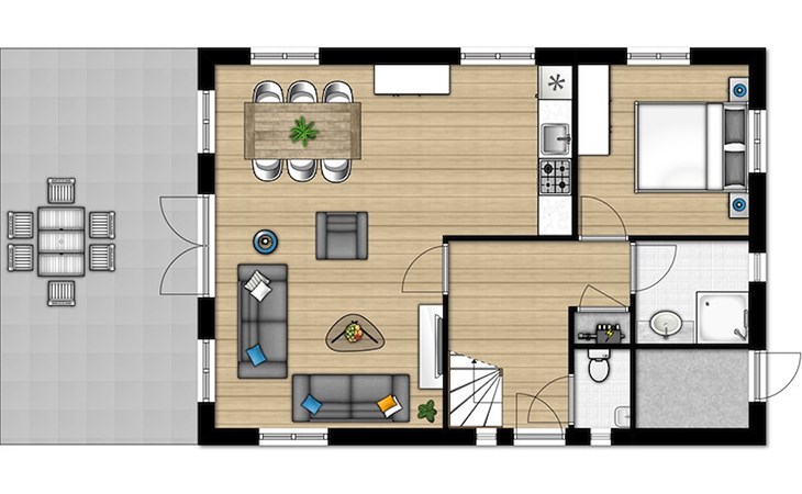 Der freistehende Bungalow Type D Comfort 6 ist für bis zu 6 Personen geeignet. Dieser Bungalow in Summio Landgoed Het Grote Zand verfügt über 3 Schlafzimmer und 2 Badezimmer, verteilt auf 2 Etagen.