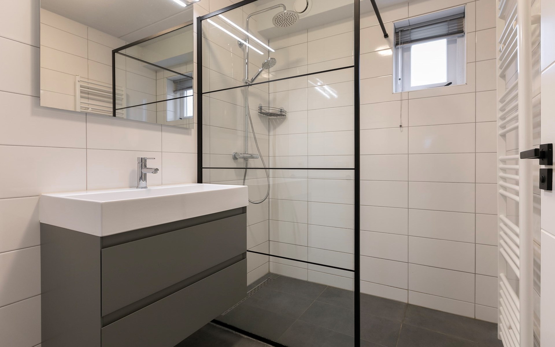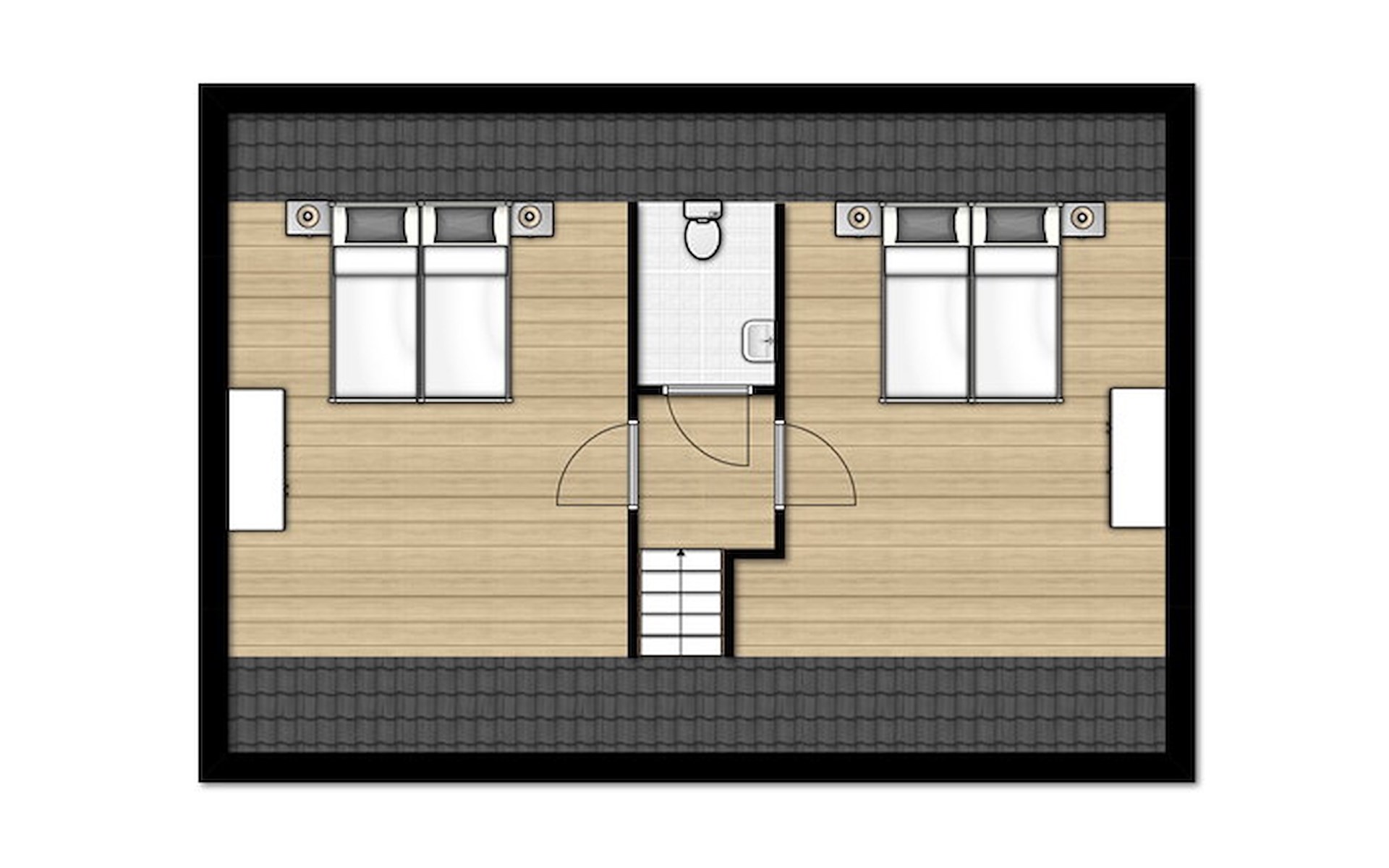 Im Erdgeschoss befinden sich 1 Schlafzimmer und 1 Badezimmer. Das Schlafzimmer hat 2 Einzelbetten. Das Badezimmer hat eine Dusche und ein Waschbecken. Die Toilette befindet sich im Badezimmer oder es gibt eine separate Toilette.