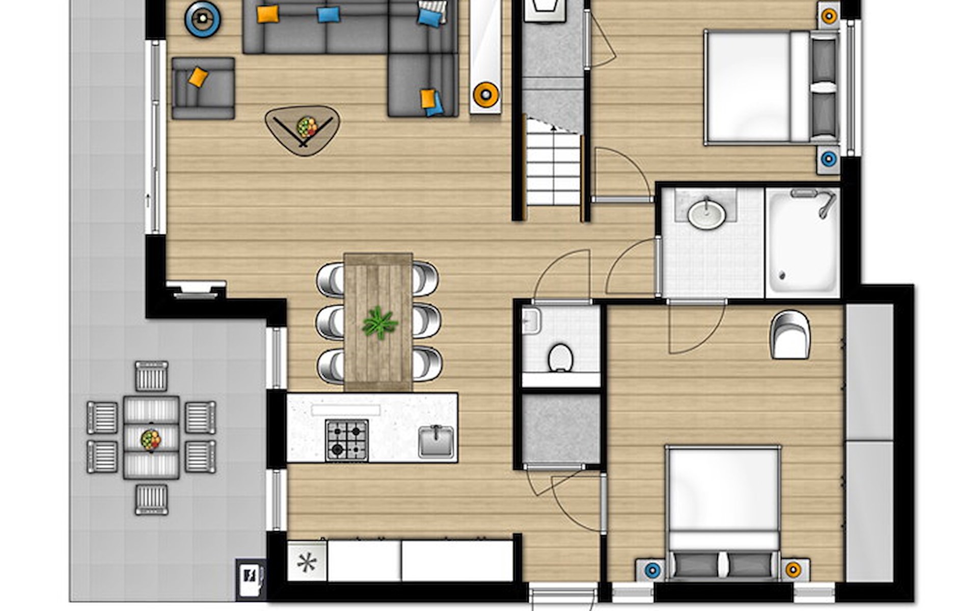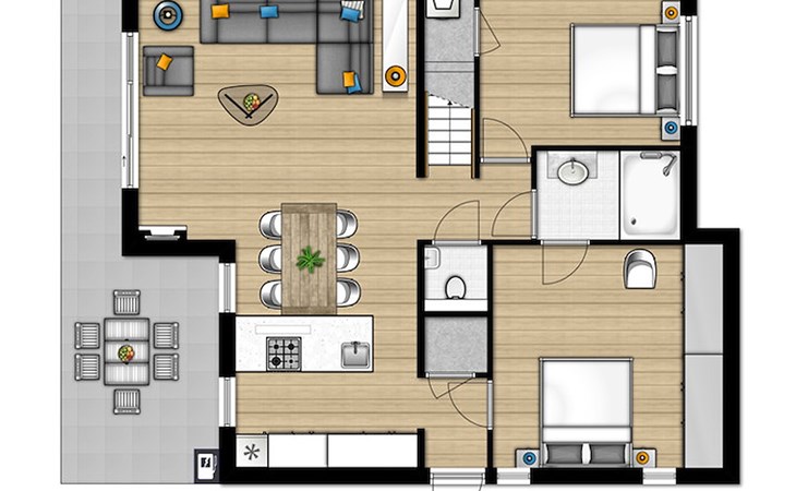 Die Unterkünfte können anders eingeteilt und eingerichtet sein. Grundrisse und Abbildungen dienen als Beispiele.