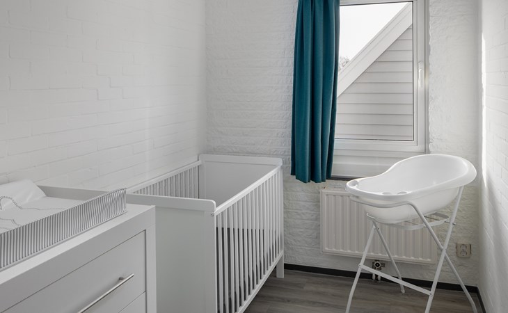 Die Wohnung hat 3 Schlafzimmer und 1 Badezimmer. Eines dieser Schlafzimmer hat 2 einzelne Boxspringbetten. Das zweite Schlafzimmer hat ein Etagenbett. Das dritte Schlafzimmer ist als Babyzimmer mit einem Kinderbett, einer Badewanne und einem Wickeltisch eingerichtet. Das Badezimmer hat eine begehbare Dusche und ein Waschbecken. Es gibt auch eine separate Toilette.