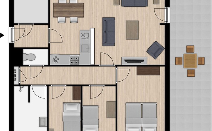 Die Unterkünfte können anders eingeteilt und eingerichtet sein. Grundrisse und Abbildungen dienen als Beispiele.