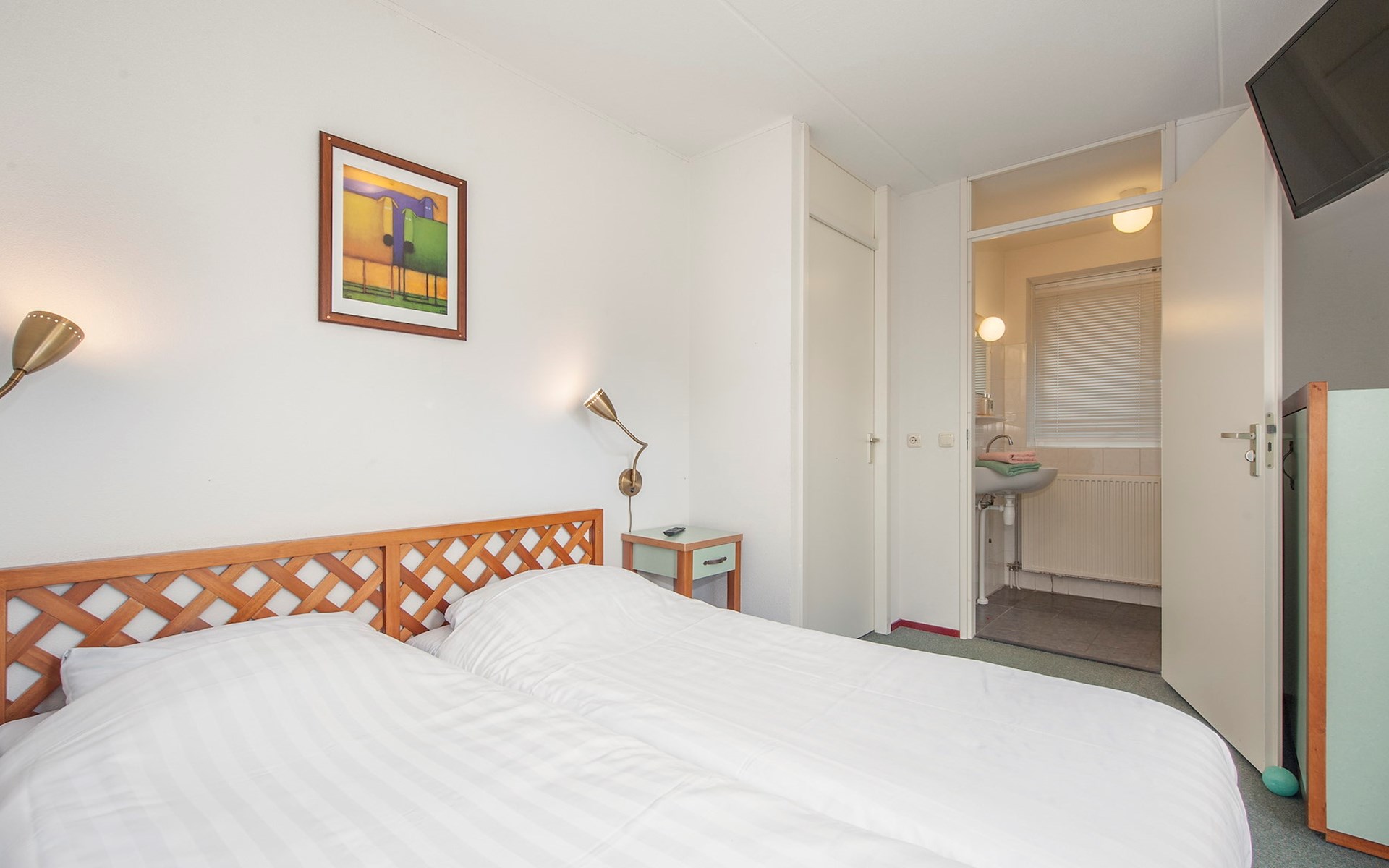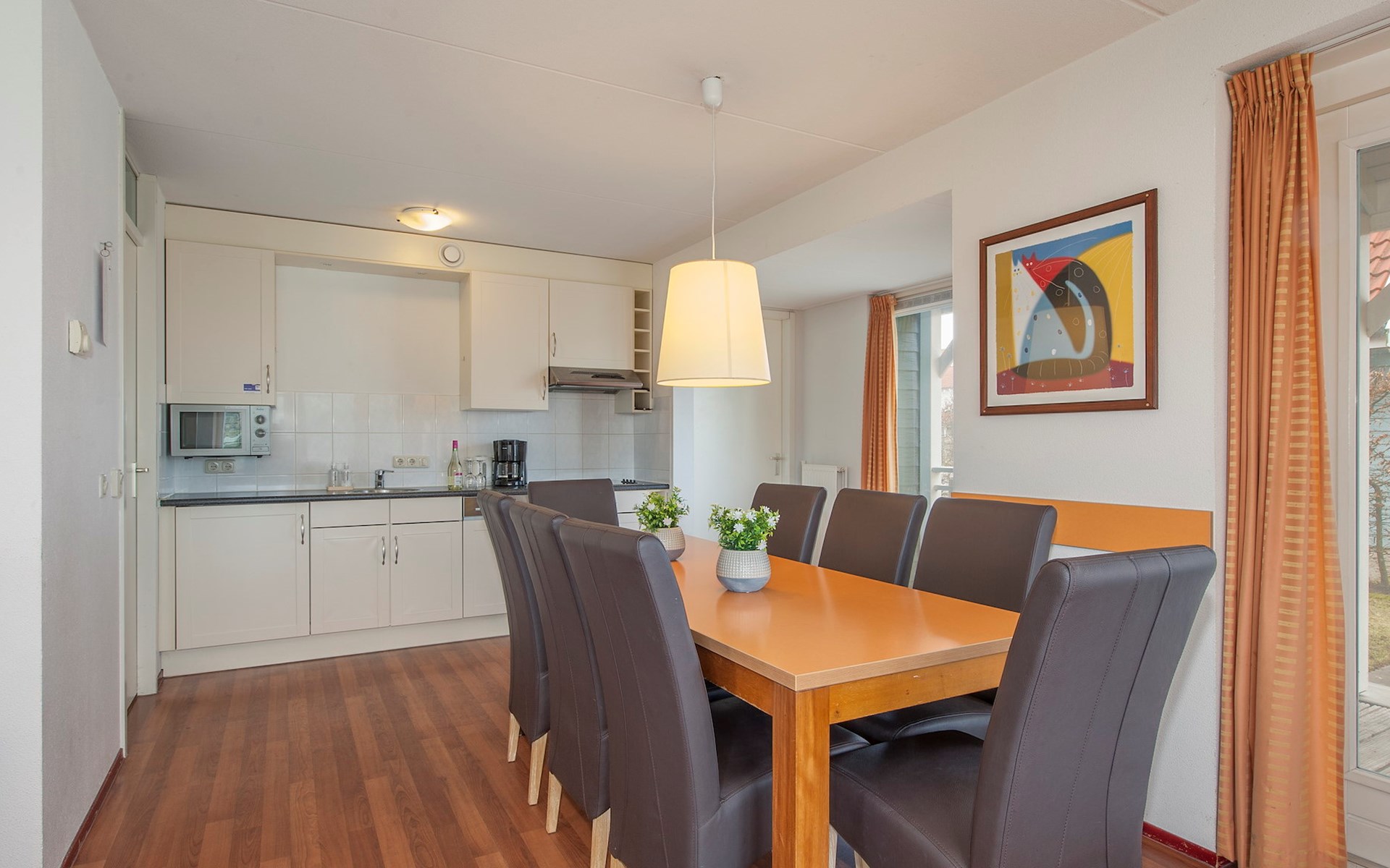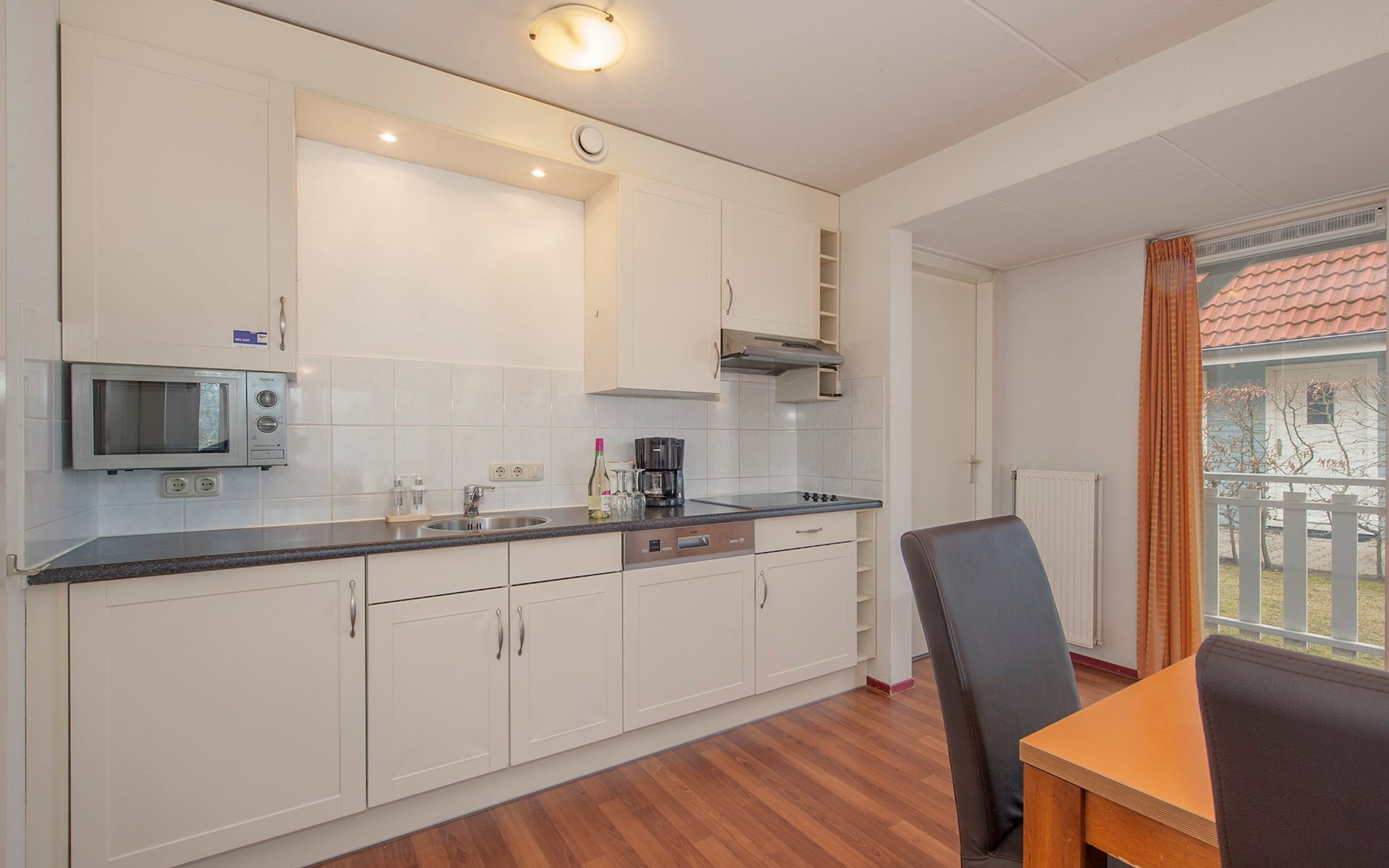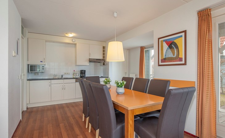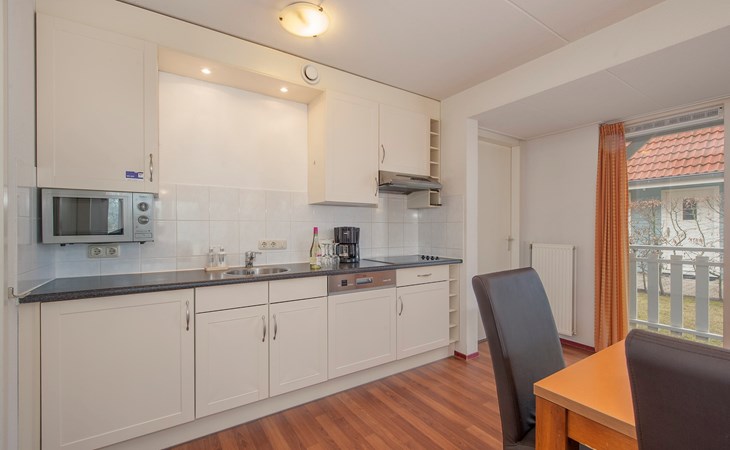Buitenhuis Standaard 8 eignet sich für Familien mit Kindern und ist mit einem Treppenschutzgitter, einem Laufstall, einem Kinderbett und einem Hochstuhl ausgestattet. Außerdem gibt es einen Abstellraum.