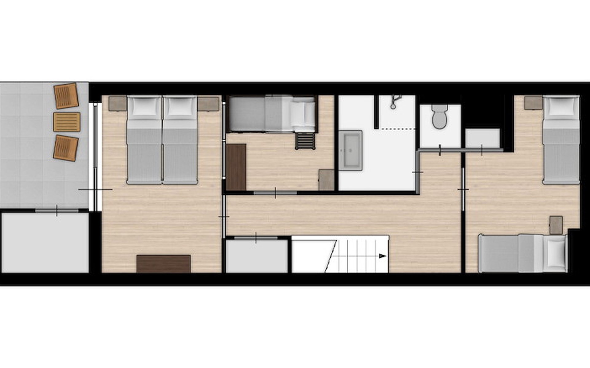 Die Wohnung Comfort 6A im Summio Parc Aquadelta ist für bis zu 6 Personen geeignet. Die Wohnung besteht aus 2 Etagen und verfügt über 3 Schlafzimmer und 1 Badezimmer.