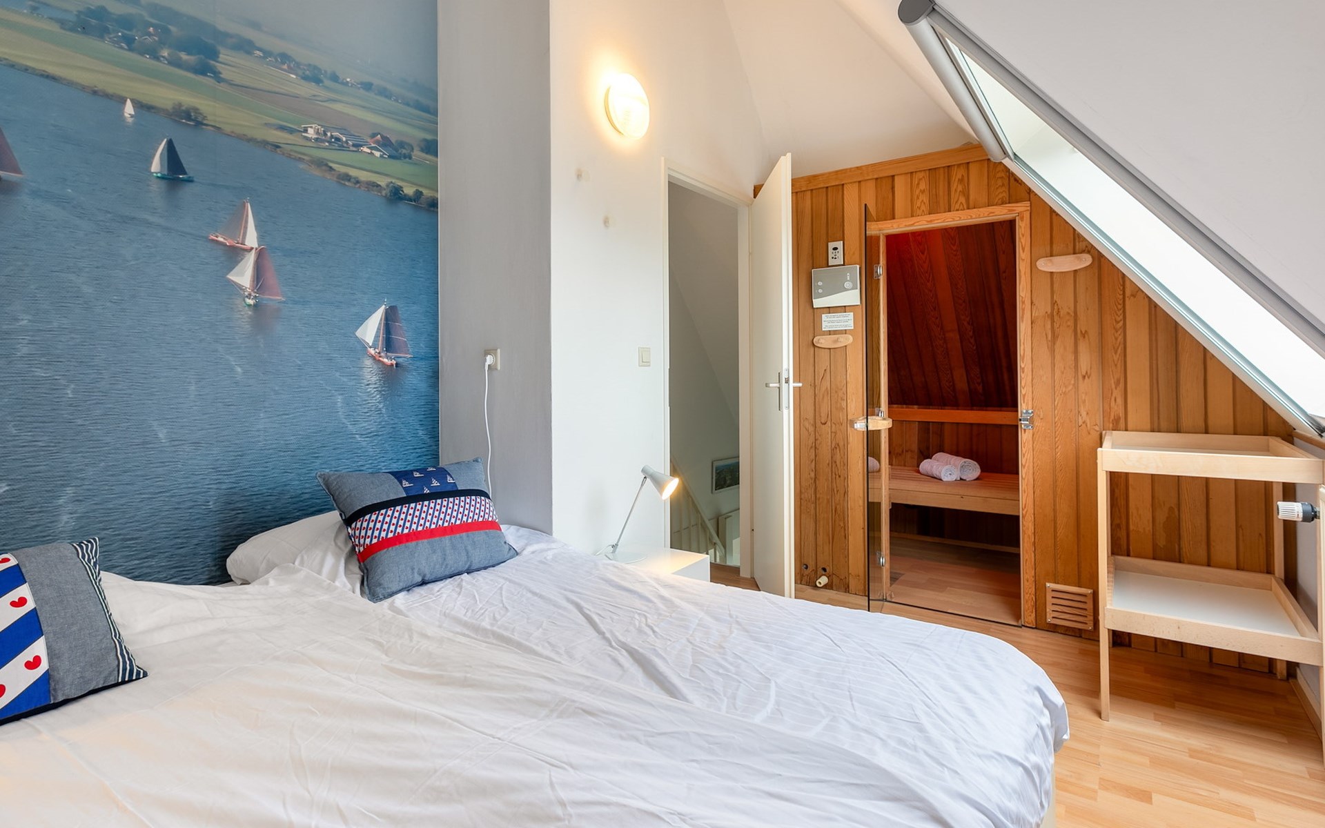 Der freistehende Bungalow Wellness Wetter Plus 6 ist für bis zu 6 Personen geeignet. Dieser Bungalow im Summio Vakantiepark It Wiid liegt direkt am Wasser und verfügt über 2 Schlafzimmer und 1 Badezimmer, verteilt auf 2 Etagen.