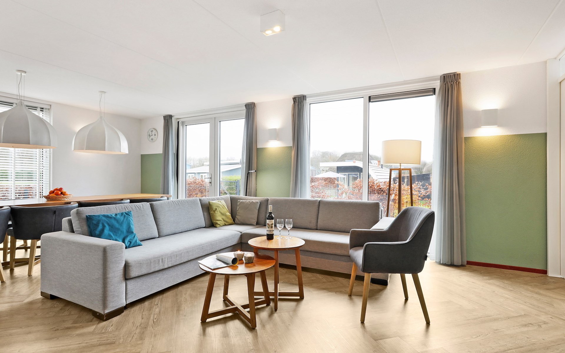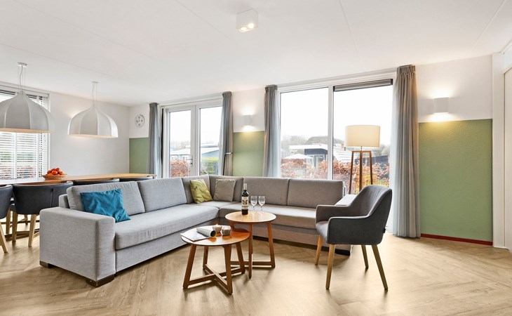 Der luxuriöser Bungalow 8LZ im Summio Waterpark De Bloemert ist für bis zu 8 Personen geeignet. Dieser freistehende Bungalow liegt am Wasser und verfügt über 4 Schlafzimmer und 2 Badezimmer, die über 2 Etagen verteilt sind.