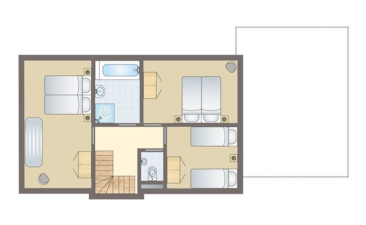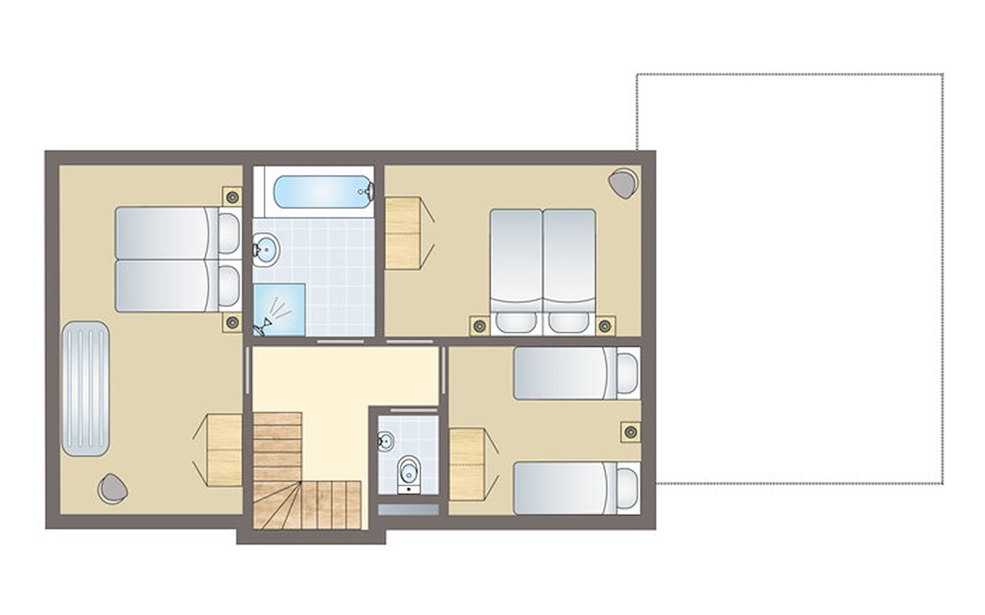 Die Unterkünfte können anders eingeteilt und eingerichtet sein. Grundrisse und Abbildungen dienen als Beispiele.