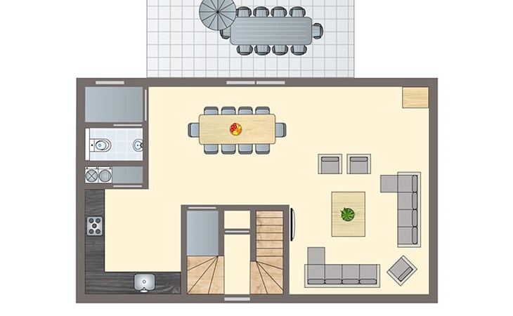 Die Unterkünfte können anders eingeteilt und eingerichtet sein. Grundrisse und Abbildungen dienen als Beispiele.