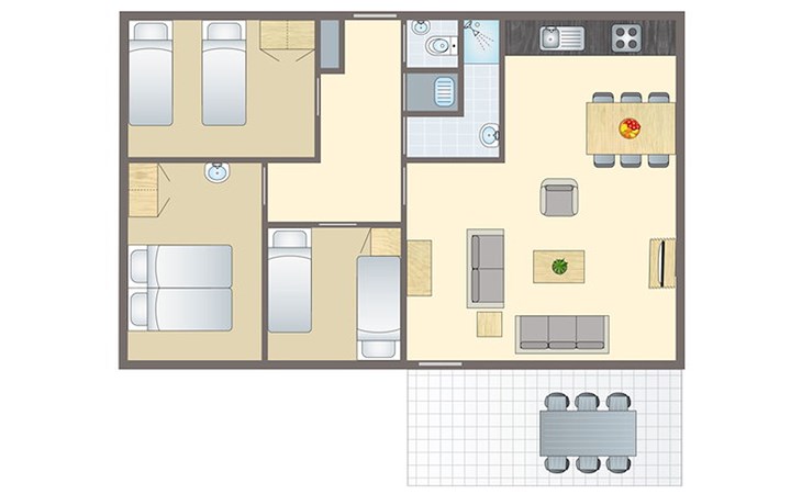 Die Unterkünfte können anders eingeteilt und eingerichtet sein. Grundrisse und Abbildungen dienen als Beispiele.
