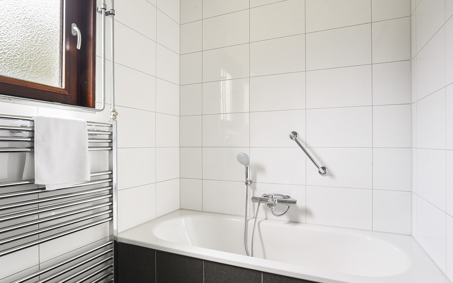 Im Erdgeschoss befindet sich ein Badezimmer mit Badewanne und/oder Duschkabine und Waschbecken. Außerdem gibt es eine separate Toilette und einen Abstellraum.