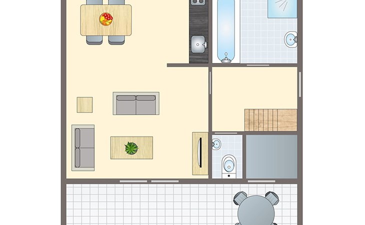 Die Unterkünfte können anders eingeteilt und eingerichtet sein. Grundrisse und Abbildungen dienen als Beispiele.