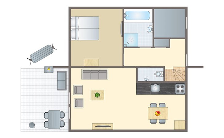 Die Unterkünfte können anders eingeteilt und eingerichtet sein. Grundrisse und Abbildungen dienen als Beispiele.