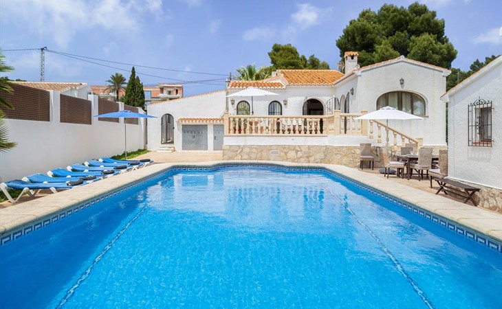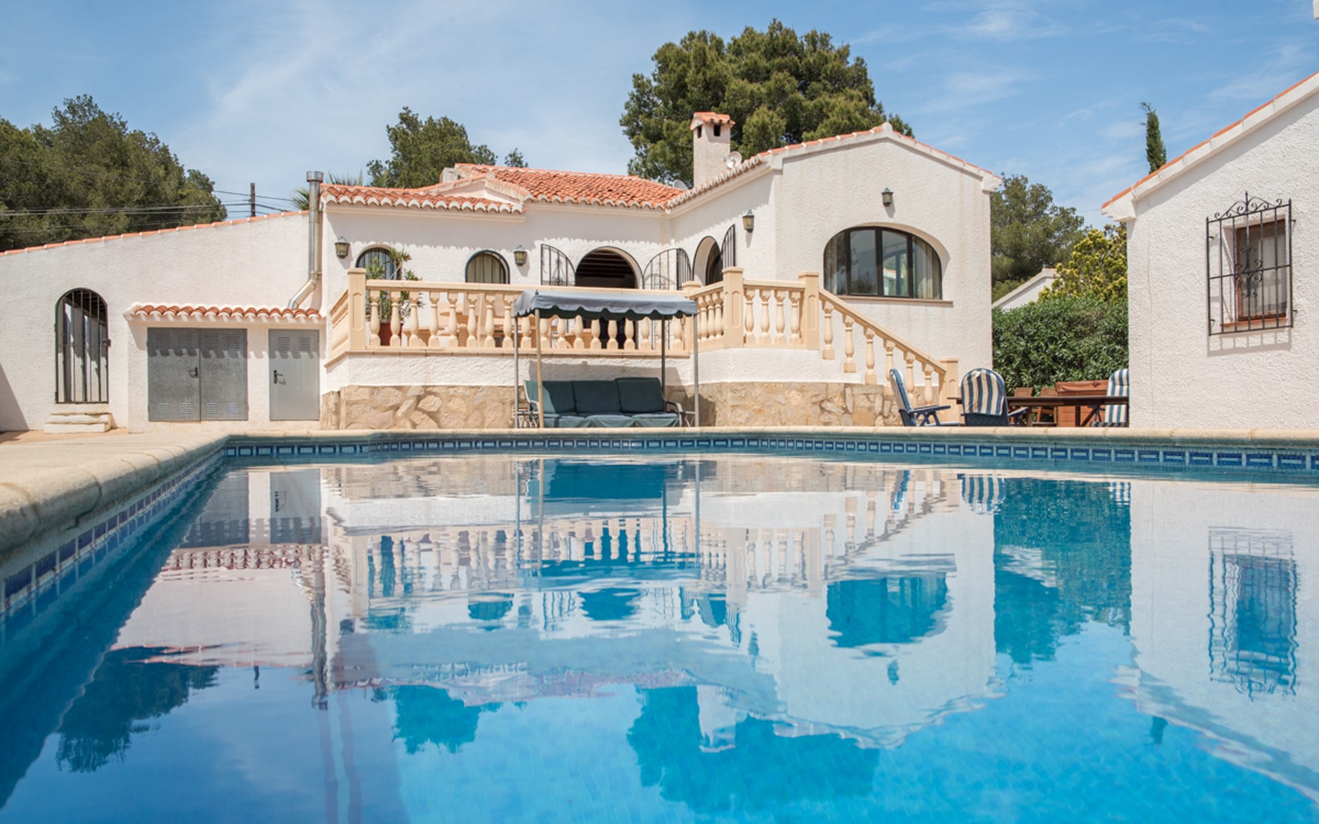 Wunderschöne und komfortable Villa mit privatem Pool in Javea, an der Costa Blanca, Spanien für 8 Personen. Das Haus liegt in einer residentiellen und bergischen Umgebung und etwa 3 Km entfernt vom Strand von Cala de la Barraca, Javea.
