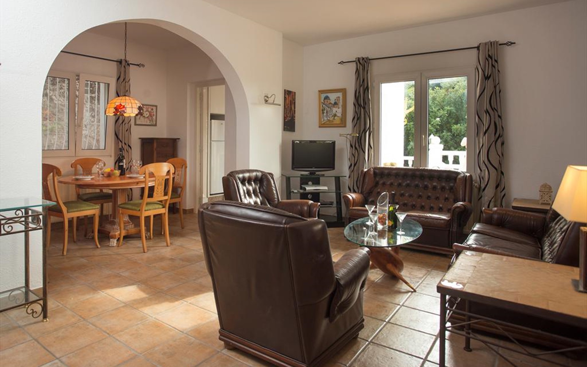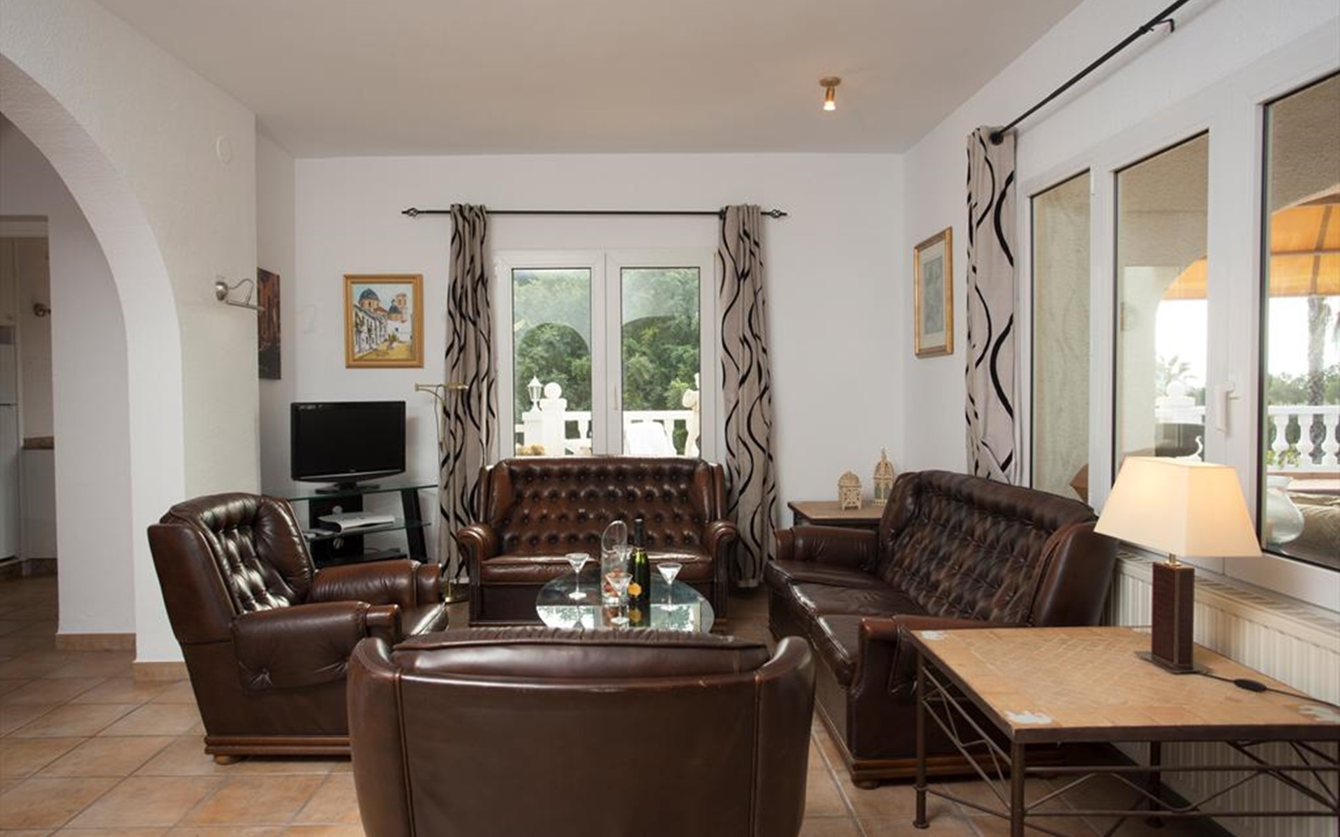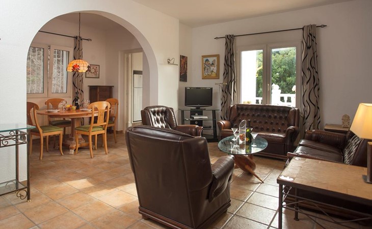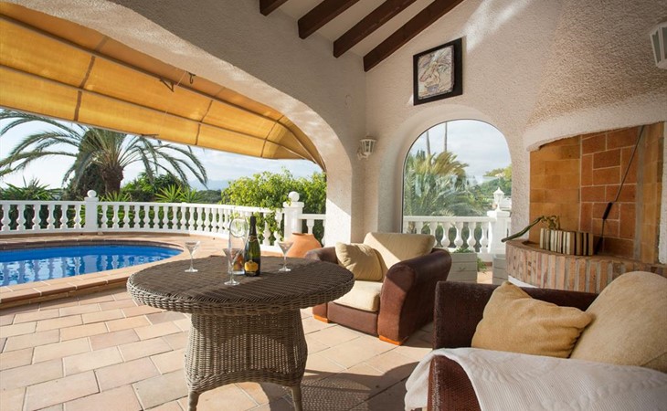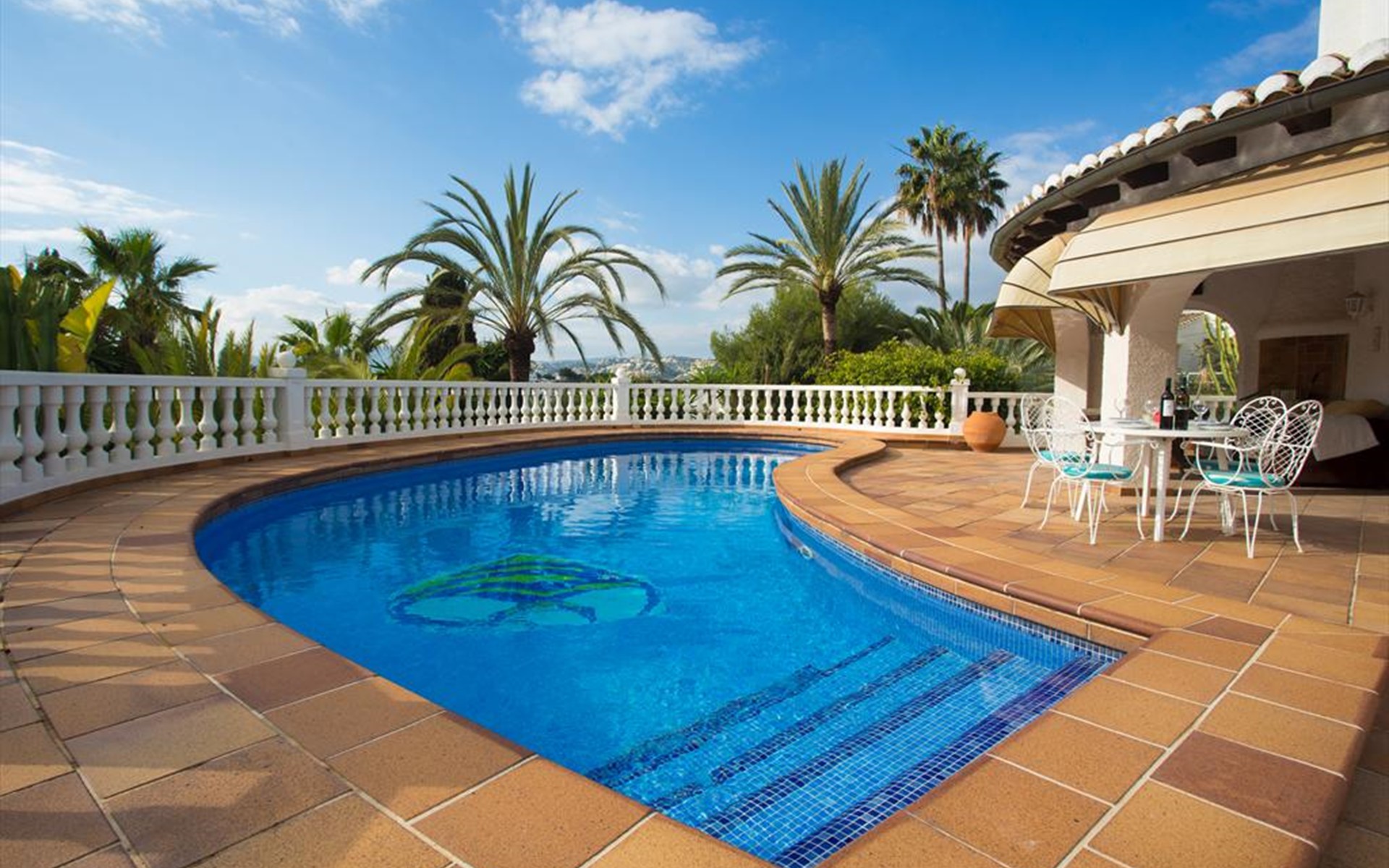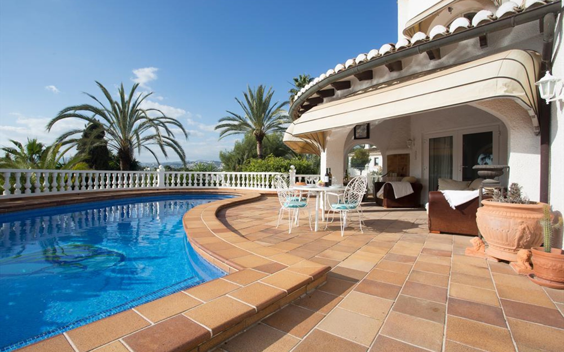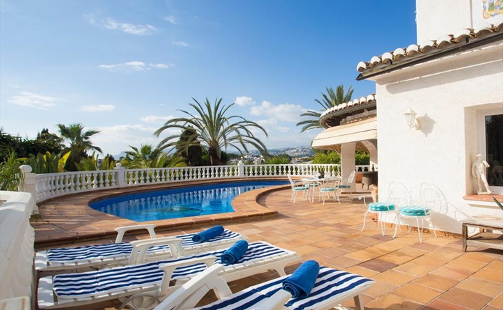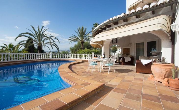 Grosse und komfortable Villa mit privatem Pool in Moraira, an der Costa Blanca, Spanien für 8 Personen. Das Haus liegt in einer residentiellen Umgebung und etwa 2 Km entfernt vom Strand von El Portet.