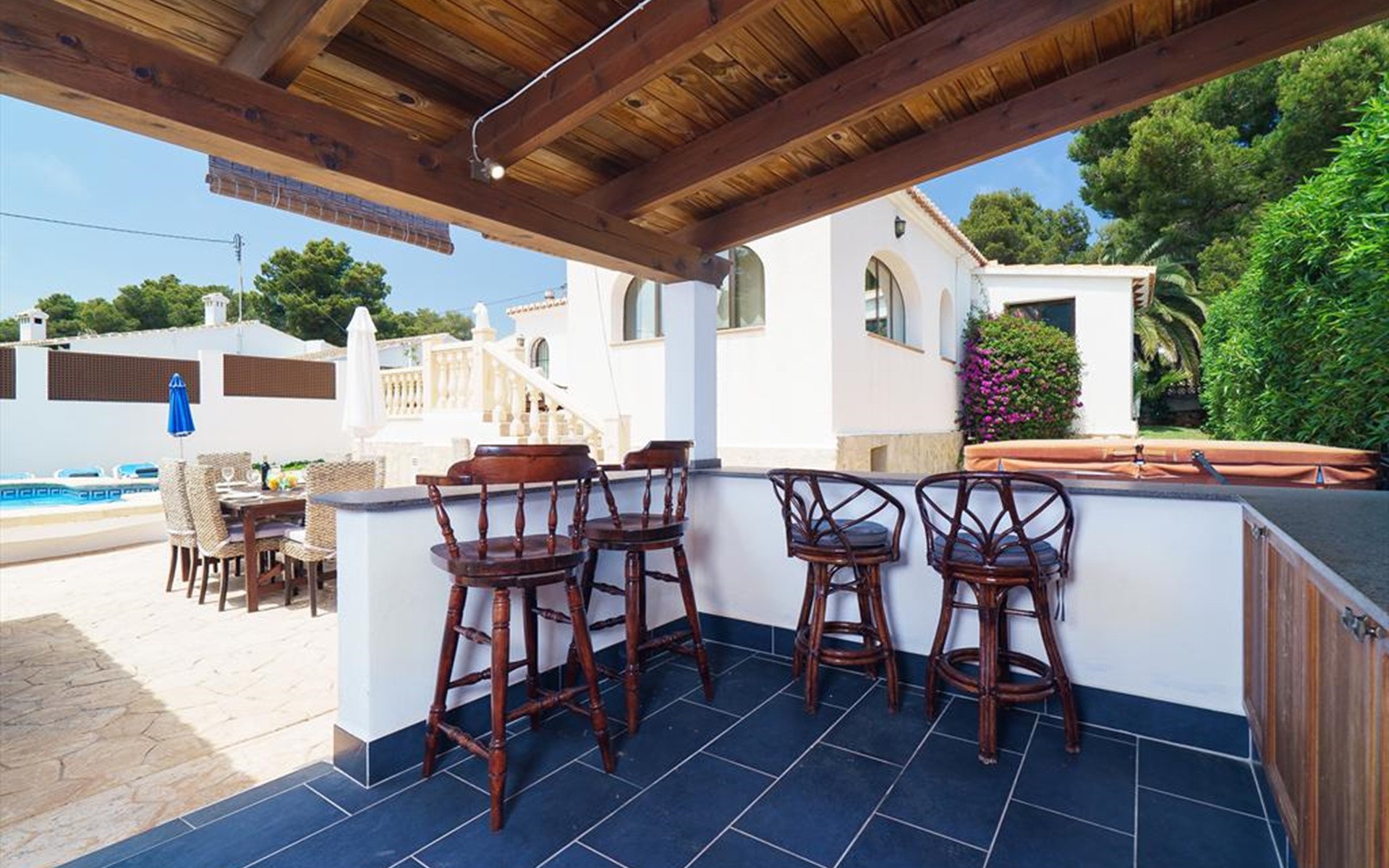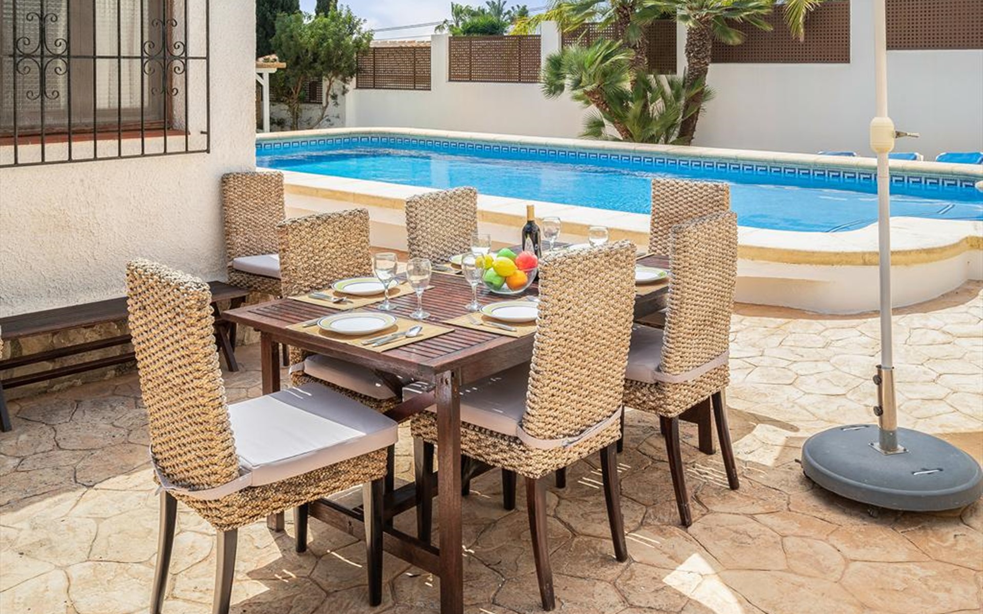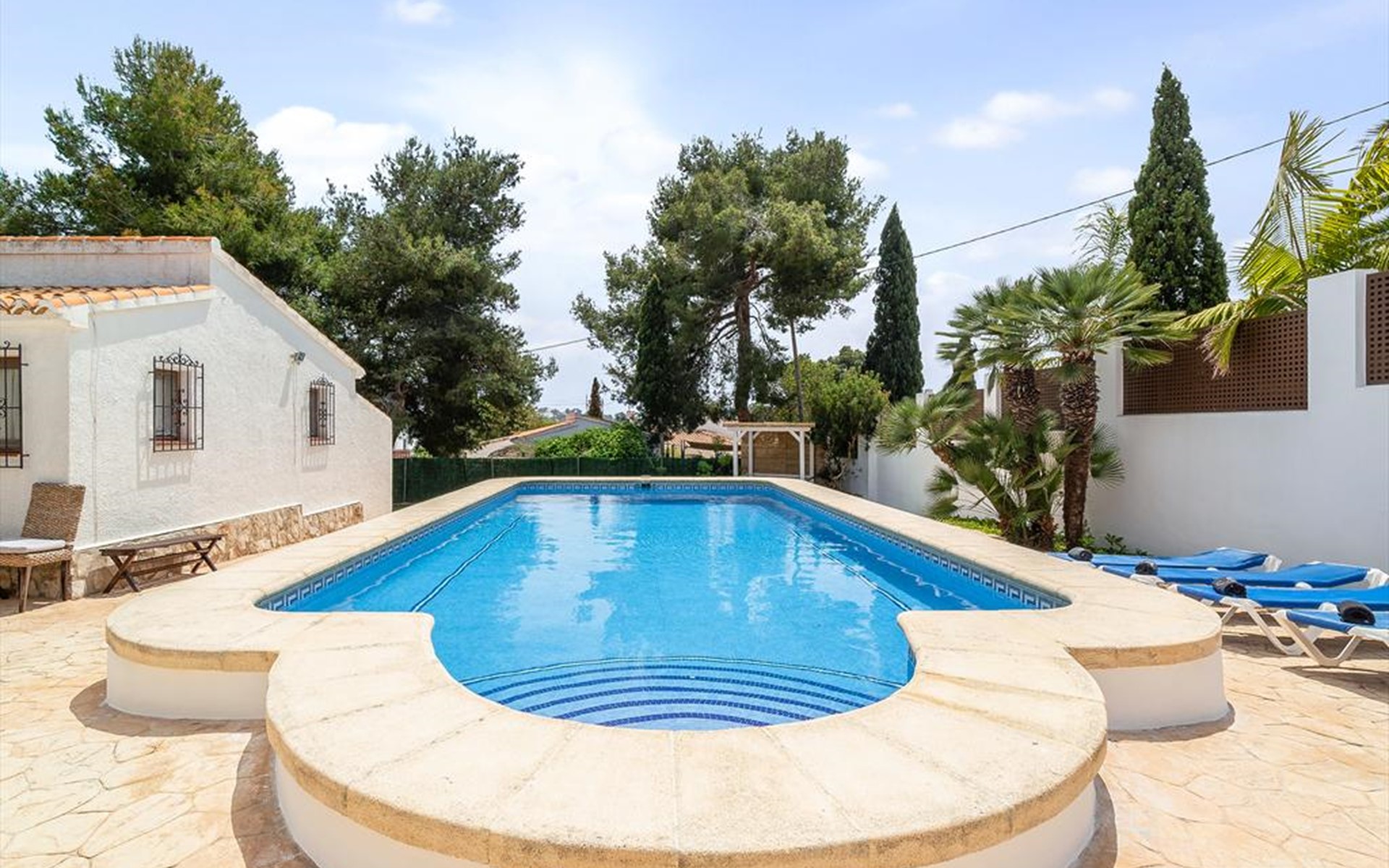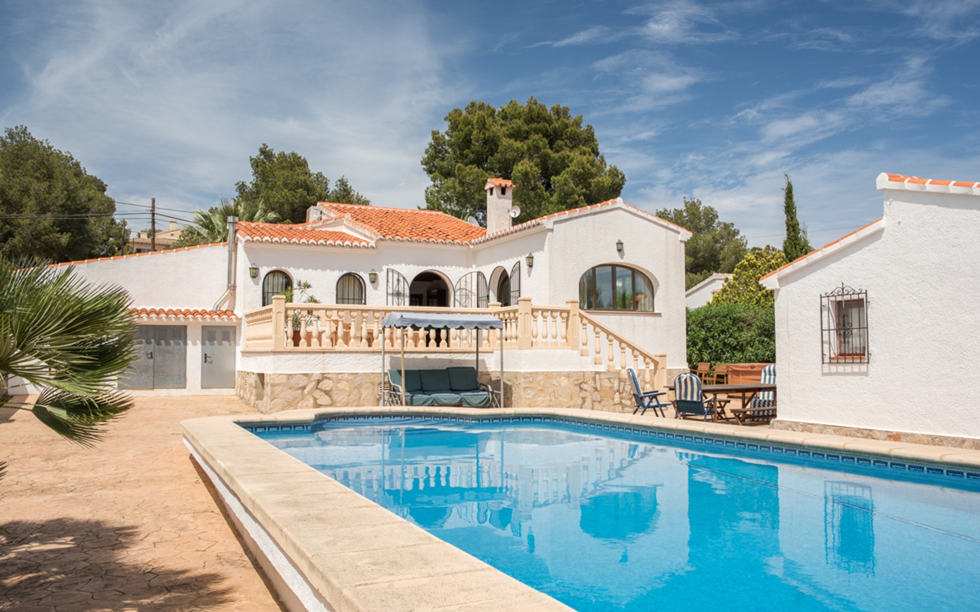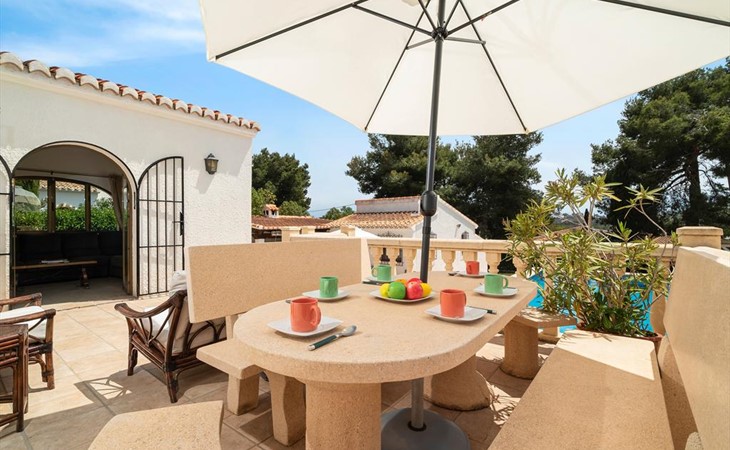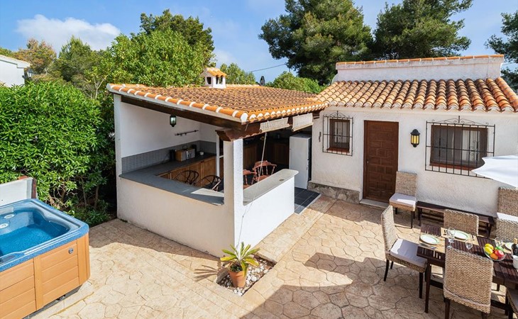 Wunderschöne und komfortable Villa in Javea, an der Costa Blanca, Spanien mit privatem Pool für 6 Personen. Das Haus liegt in einer residentiellen Umgebung und etwa 3 Km entfernt vom Strand von Cala de la Barraca, Javea.