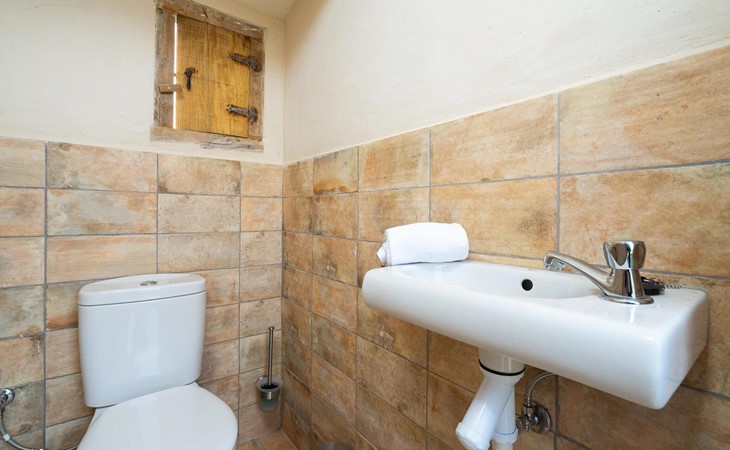 - ensuite Badezimmer mit Einzelwaschbecken, Dusche und Toilette