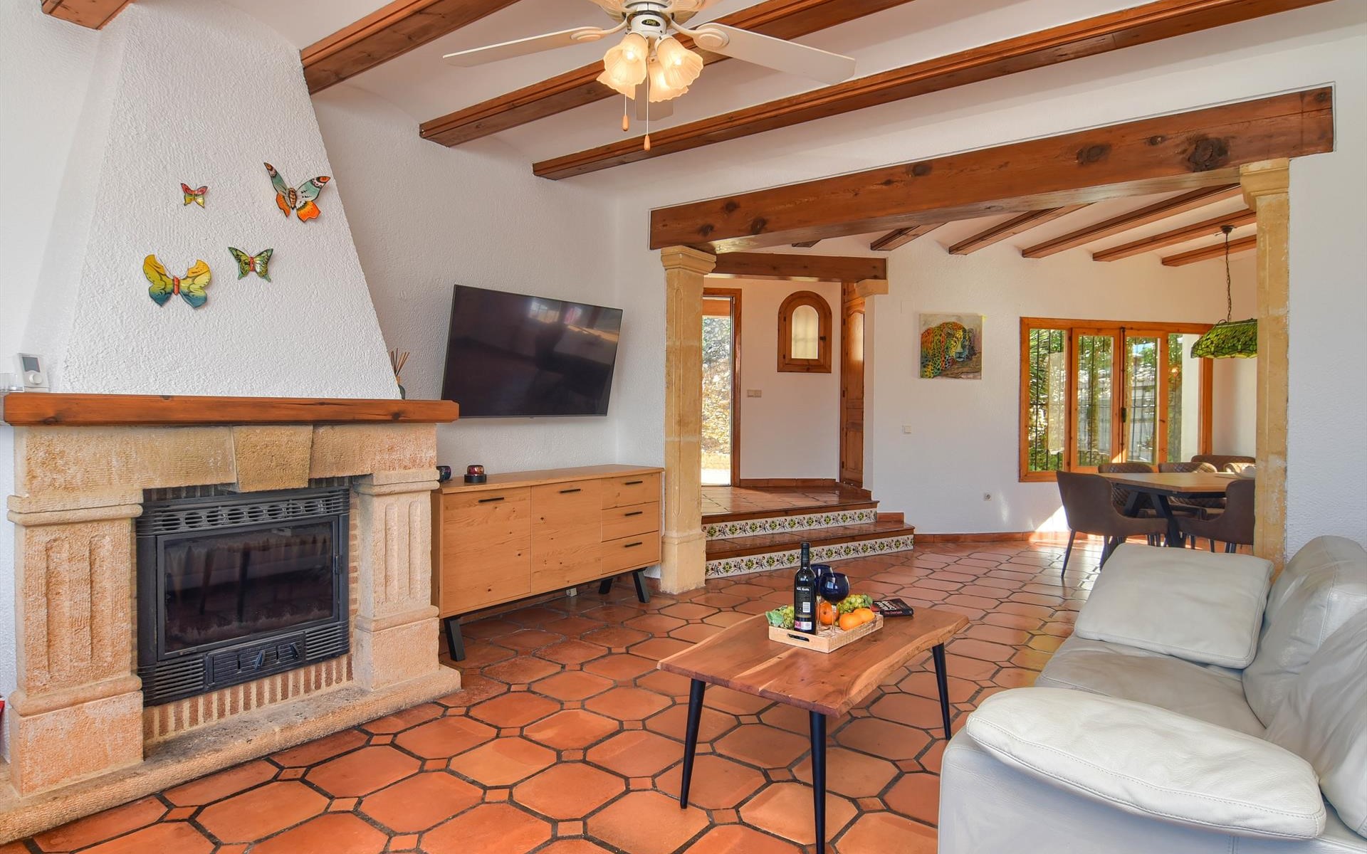 Das Haus hat 2 Schlafzimmer und 1 Badezimmer. Die Unterkunft bietet viel Privatsphäre, einen schönen Garten mit Bäumen, einen wunderschönen Pool und einen schönen Blick auf das Tal und die Berge. Die Bequemlichkeit und die Nähe vom Strand, Sportaktivitäten, Sehenswürdigkeiten und Kultur machen dies zu einer geeigneten Villa um Ihre Ferien in Spanien zu verbringen mit Familie oder Freunden und sogar Ihren Haustieren.