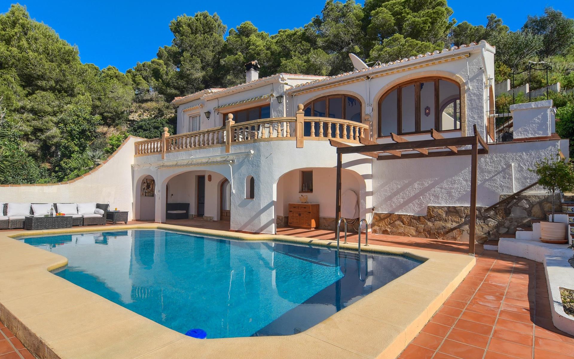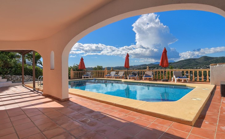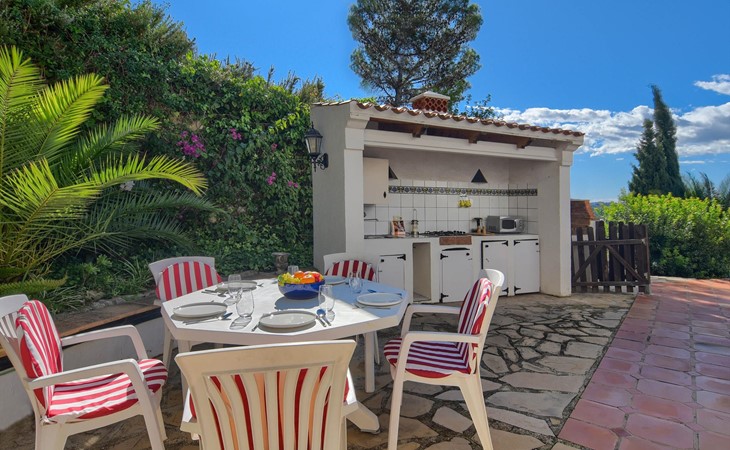 Schöne und komfortable Villa mit privatem Pool in Javea, Costa Blanca, Spanien für 4 Personen. Das Haus liegt in einer residentiellen Umgebung und etwa 4 Km entfernt vom Strand von El Arenal, Javea.