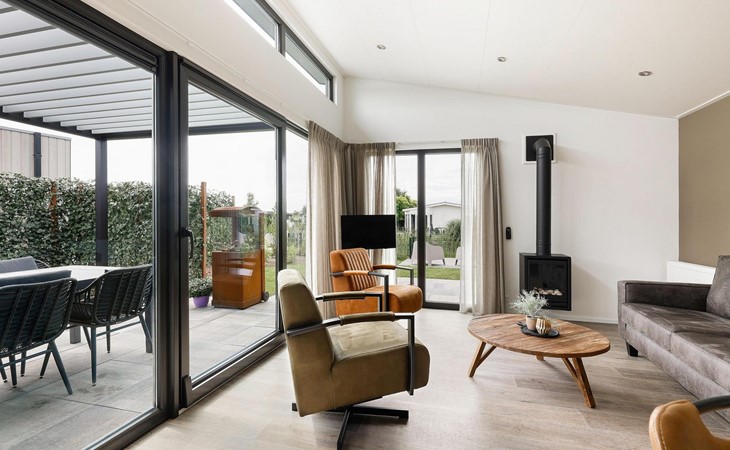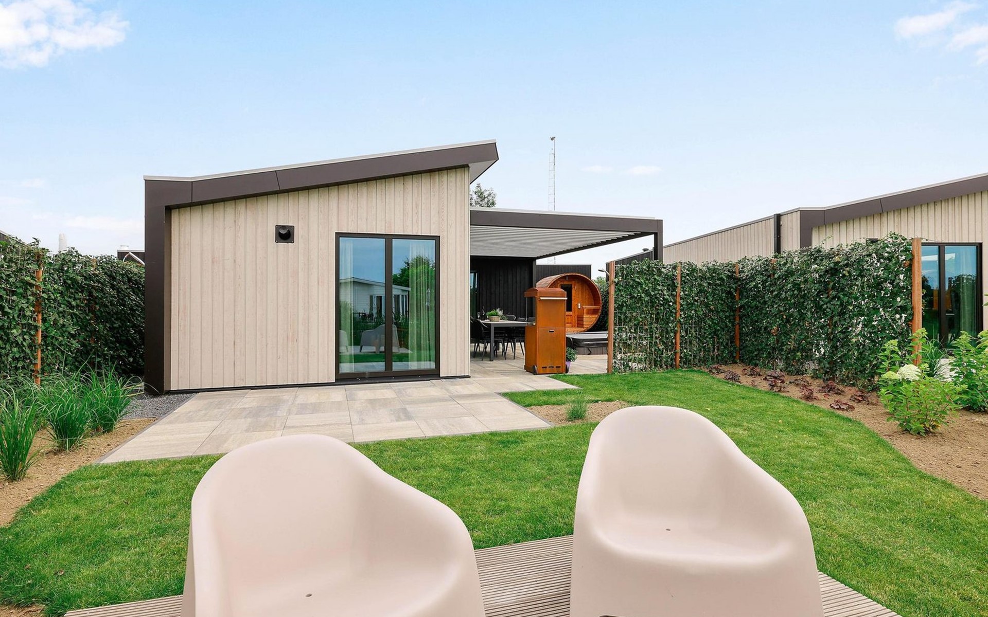 Die Wellnessvilla bietet Platz für sechs Personen und verfügt über eine eigene Sauna und eine Außendusche im Garten der Unterkunft. Ein privater Wellnessbereich in Ihrem Urlaub, wer hätte das nicht gern? Draußen können Sie unter dem elektrisch verstellbaren Vordach mit Außenkamin wunderbare Stunden genießen. Das ist ein toller Ort, um seine Zeit zu verbringen, sogar wenn das Wetter nicht so toll ist.
