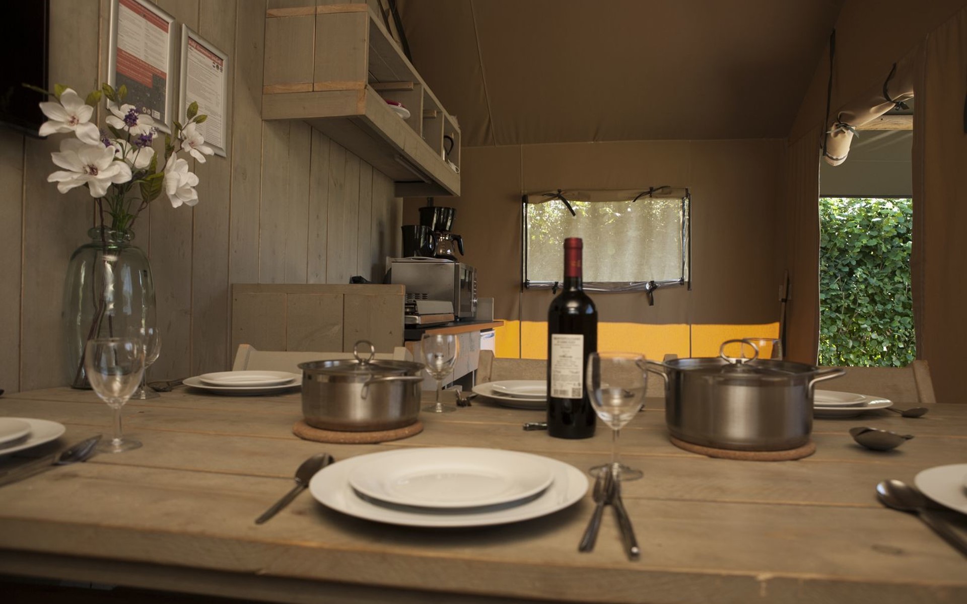 Sie können in unserem Safarizelt während der Campingsaison von März bis Oktober übernachten.