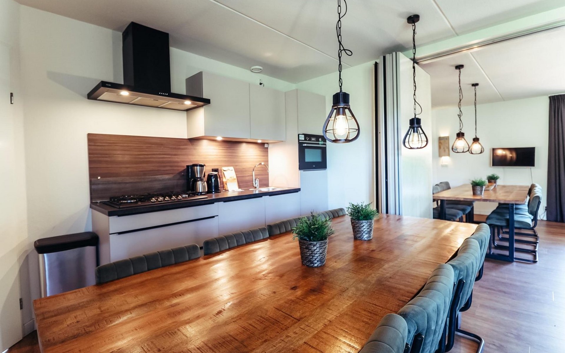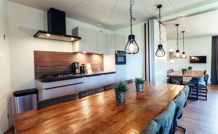 Bungalow Voorde ist eine Doppelhaushälfte, bestehend aus zwei Bungalows für 8 Personen, die durch eine offene Schiebewand verbunden sind. Insgesamt kann dieser Gruppenbungalow also eine Gruppe von nicht weniger als 16 Personen beherbergen. Ideal für einen Familienurlaub oder für mehrere Familien. Die Bungalows sind über eine große Schiebewand im Wohnzimmer miteinander verbunden. Wenn Sie diese Wand aufschieben, profitieren Sie von einem großen Wohnzimmer mit zwei Fernsehern und zwei geräumigen Esstischen für 8 Personen, die Sie einfach zusammenschieben können.