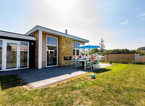 Around your lodge is a beautiful terrace with garden. There are various nooks and crannies, enjoy eating outside at the modern garden set, or a delicious drink in the lounge set or dream away on one of those fine sun beds under the parasol. Here you can fully enjoy the outdoors!