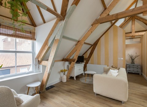 Both bedrooms open onto the terrace at the back (6 m2 facing south). Take the spiral staircase here to the roof terrace (about 30 m2) where you can enjoy the sun all day. The terrace has a large lounge set with thick cushions, a lounge chair, lounge sofas and a lounge table.