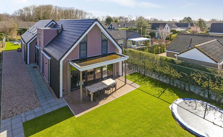 Together, the villas have eight bedrooms, four bathrooms, two separate living rooms and two fully equipped kitchens. Would you like to have dinner together? Both villas have an 8-seater dining table, at which you can dine together and also board games have been thought of. Outside, too, you will want for nothing. The spacious garden (artificial grass) is quiet, has a cosy terrace with garden furniture and for the little ones, there are two trampolines. There is something for everyone, so you can enjoy a relaxing holiday.
