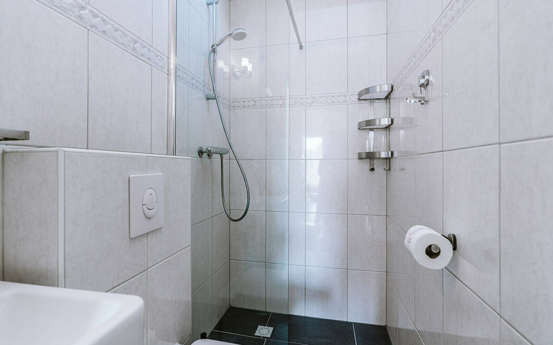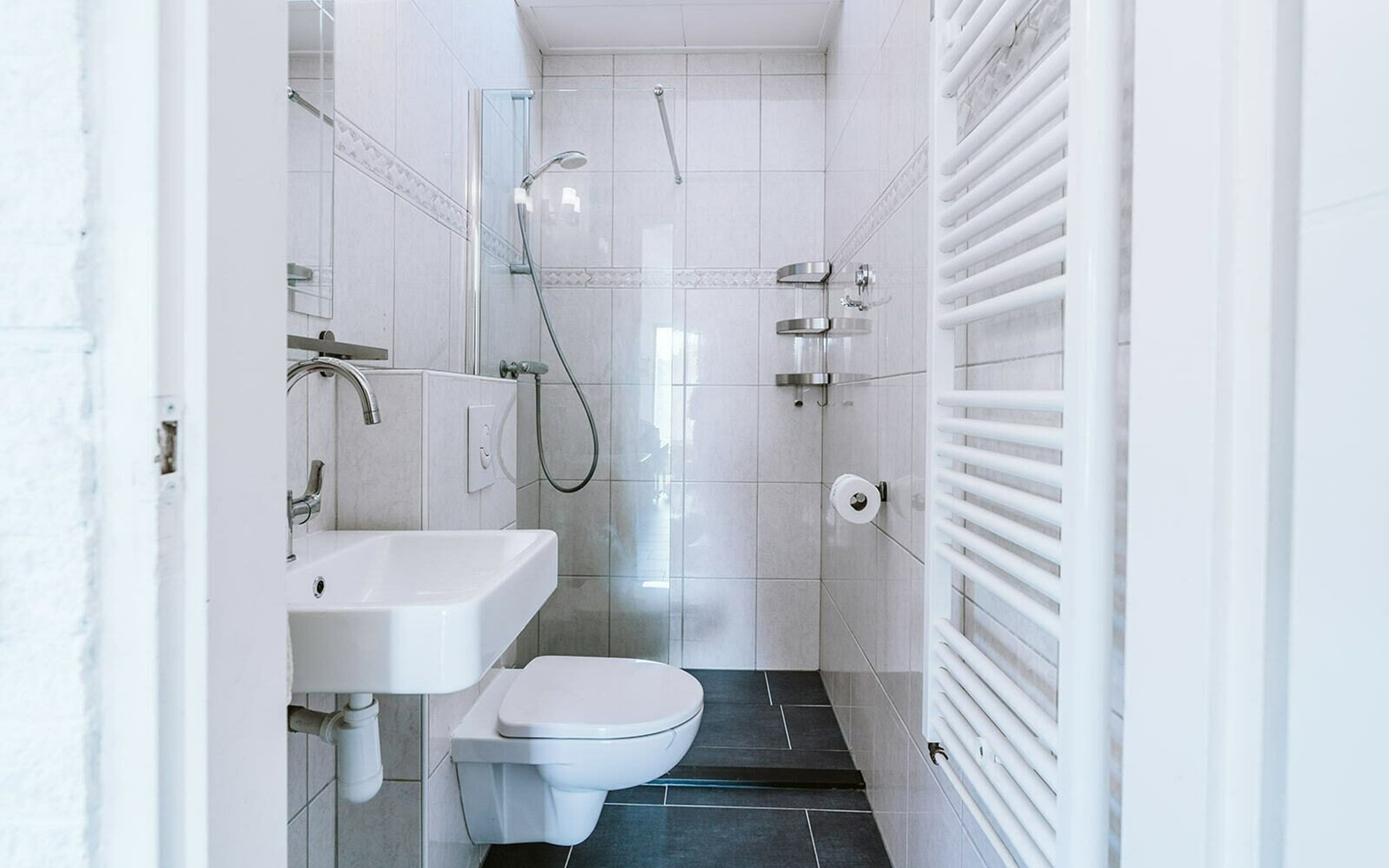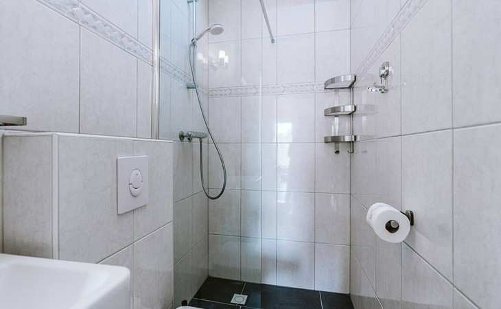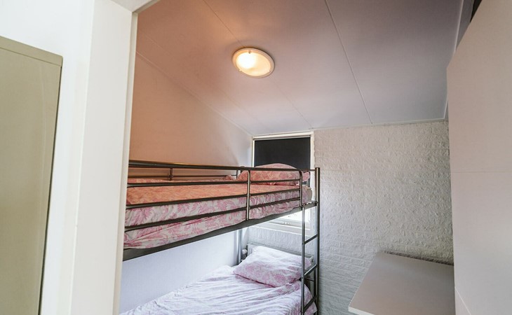 From the small hallway, you enter the bright living/dining area. Two comfortable 2-seater sofas invite you to sit together comfortably. The TV has Internet and thanks to a satellite connection can also receive various German channels. At the round dining table, you can enjoy a self-prepared meal from the adjacent fully equipped open kitchen. A restful night's sleep awaits you in the two sleeping chambers. In the first room, slip under the covers in a double box spring bed 160 x 200 cm. The second room is furnished with a bunk bed 2 x 90 x 200 cm. The furnishings are completed by a bathroom with a shower, toilet, and sink.