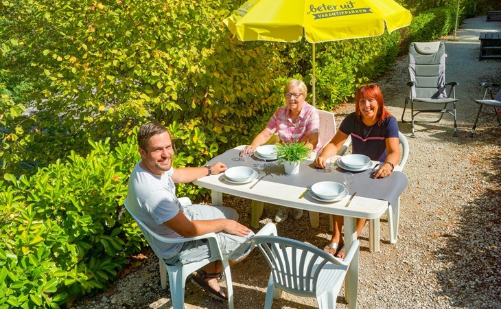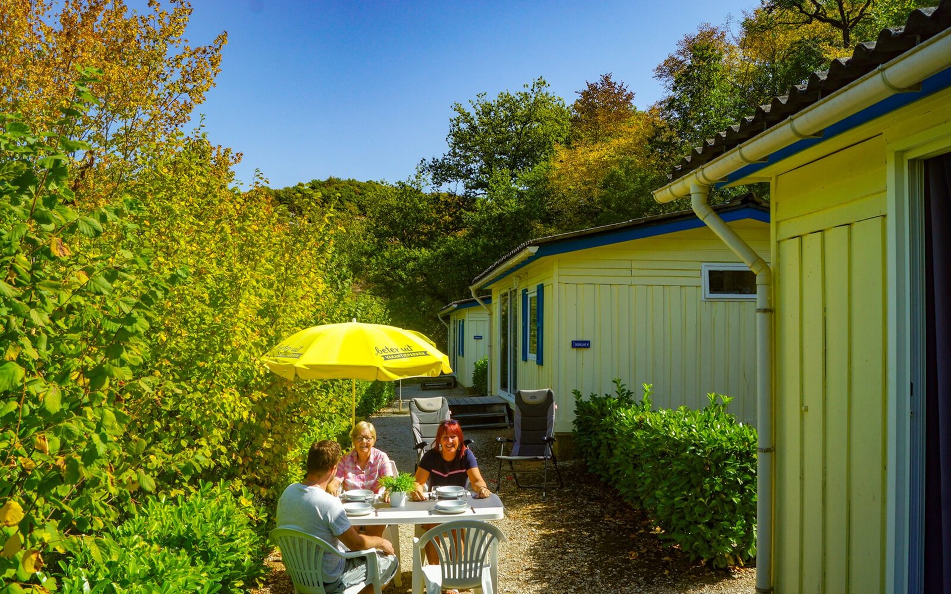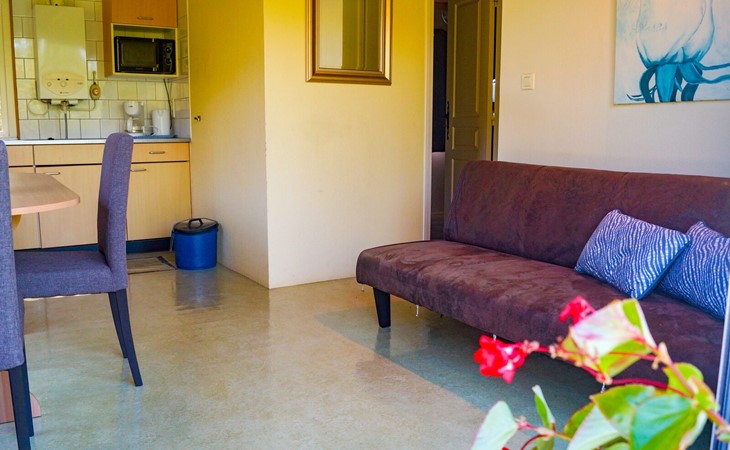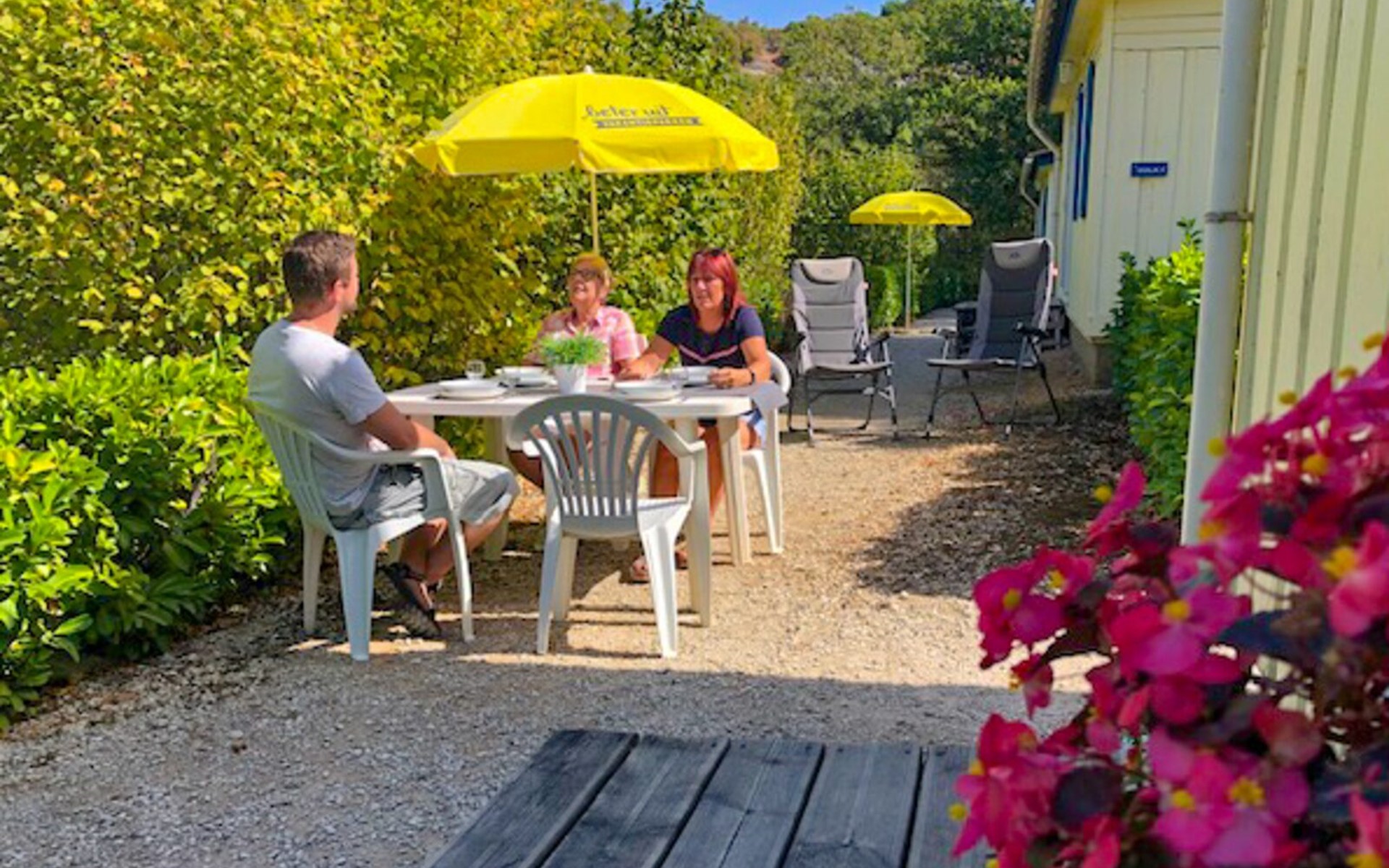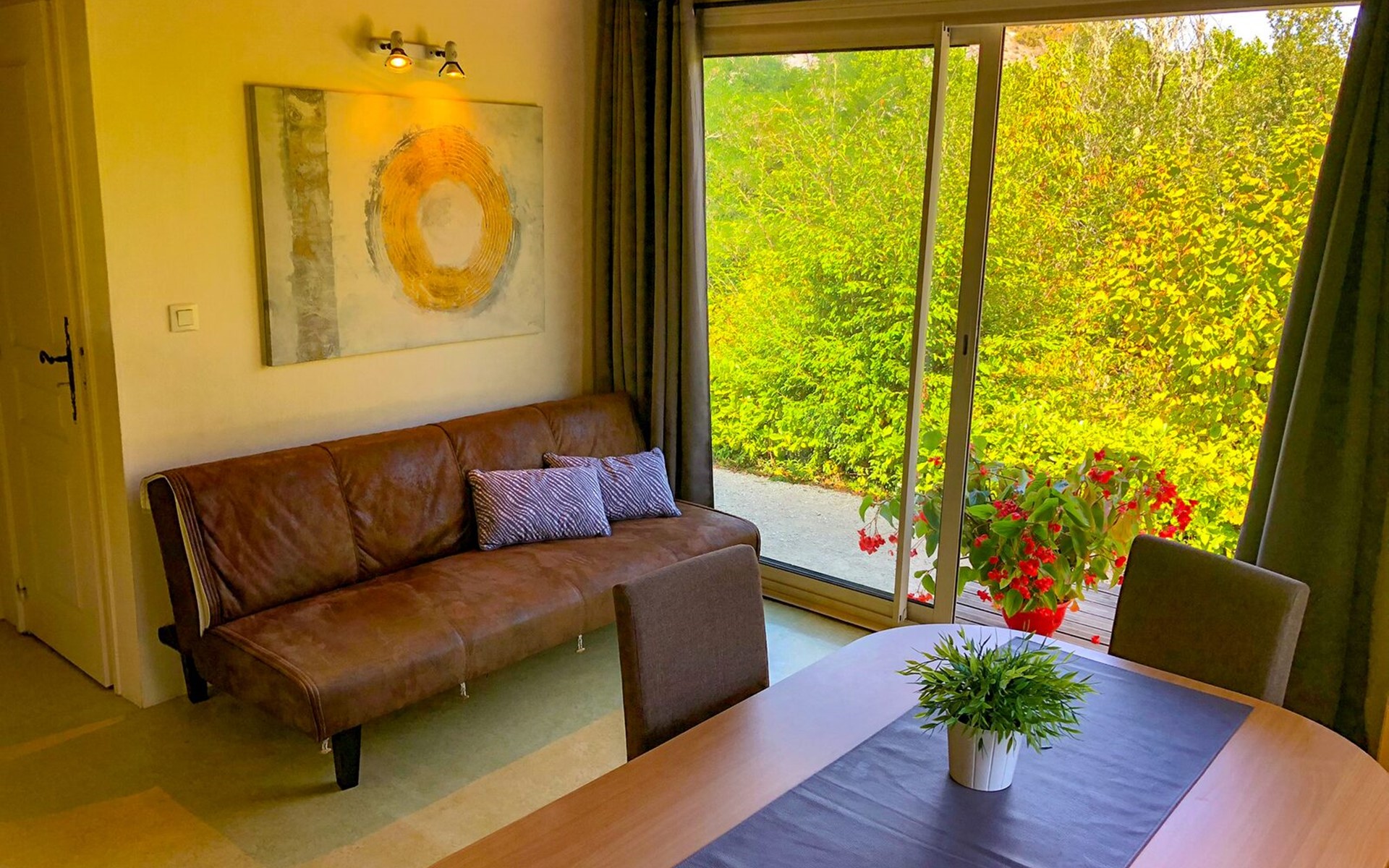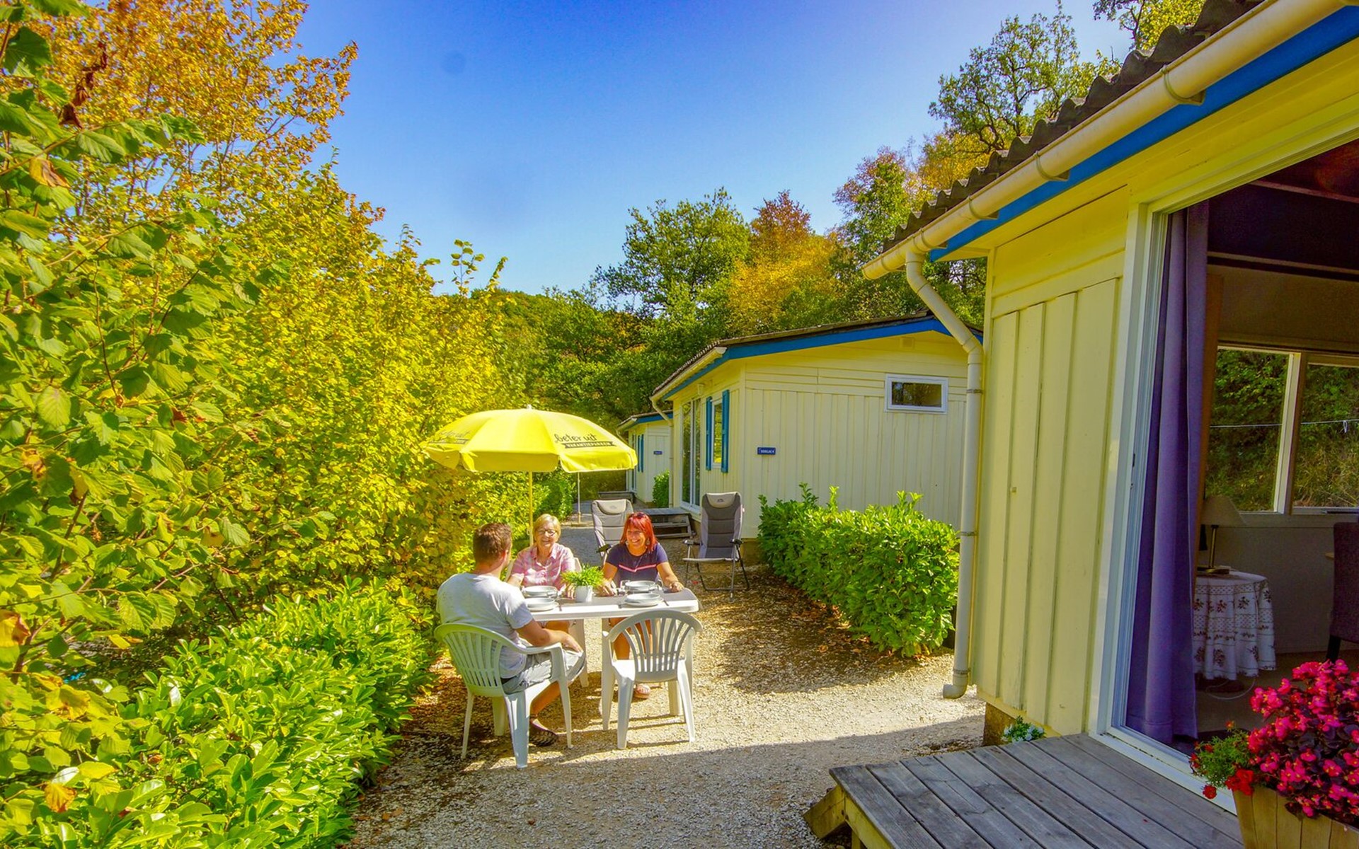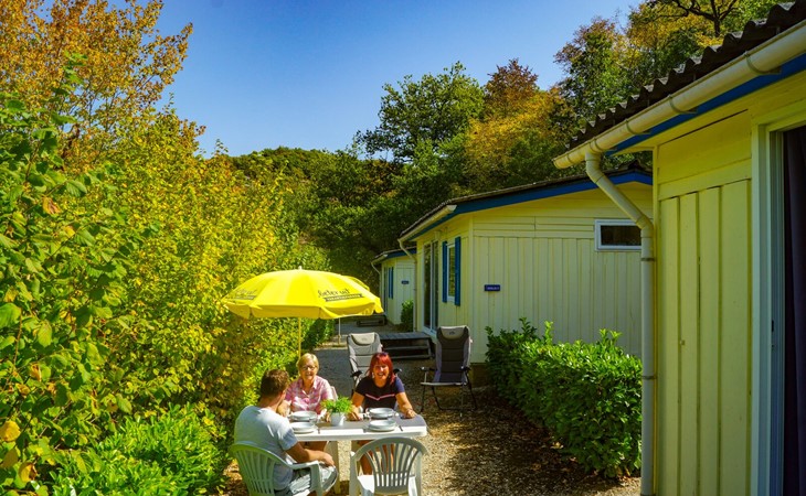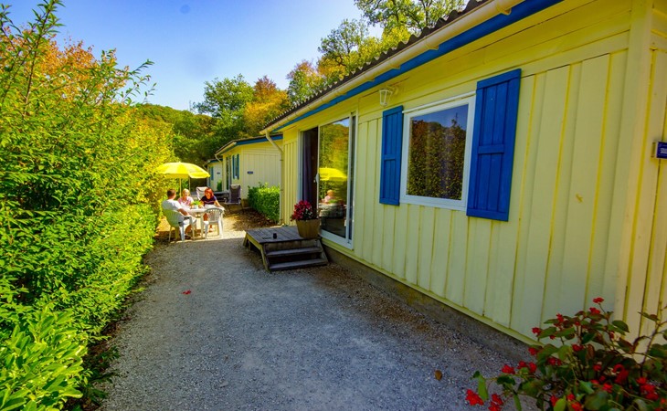 From the living room with an open kitchen you get to your own terrace with furniture. Very suitable to start the day with an outdoor breakfast or to sit late at the end of the day. The bedrooms have a washbasin each. The parents’ bedroom has a double boxspring. Sleeping like at home, but then in the French nature. The other bedroom has two bunk beds. The bathroom has a shower, toilet and a washbasin.