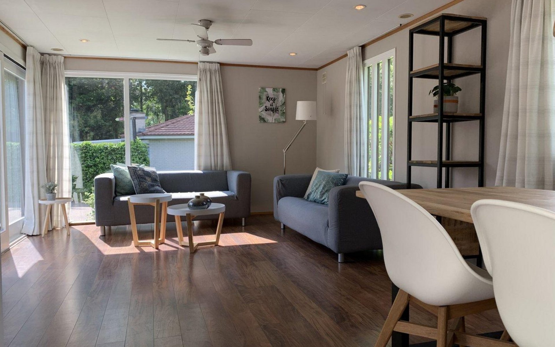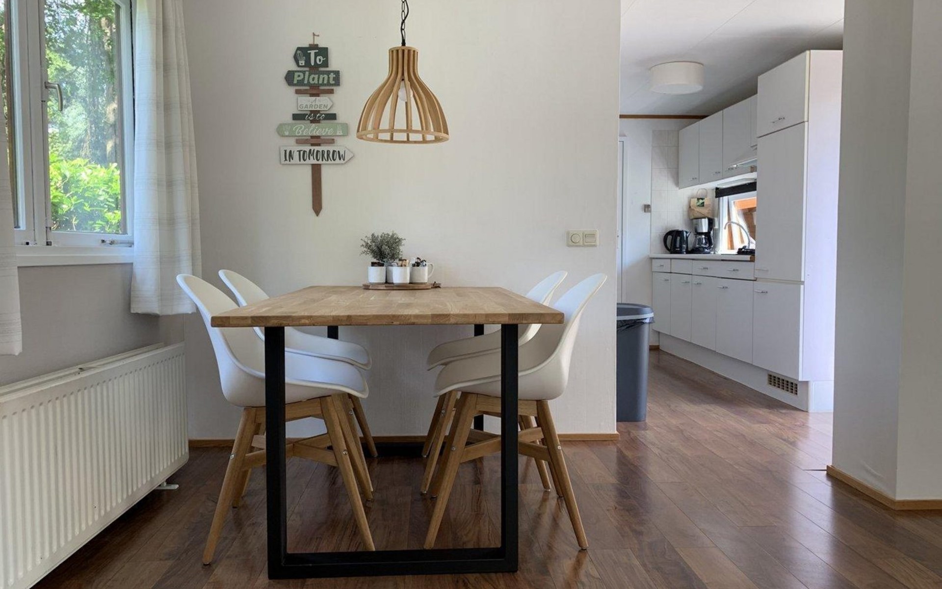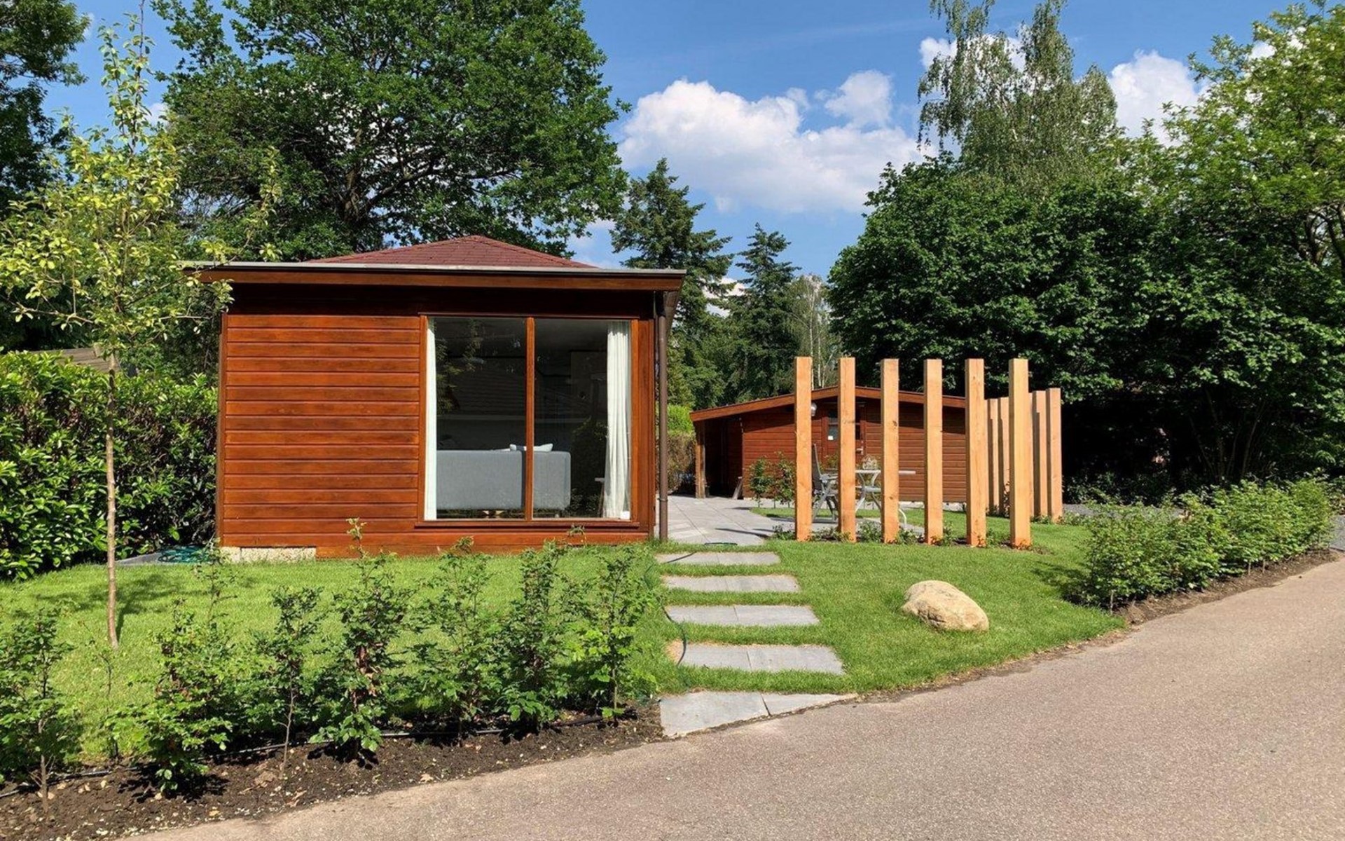 The chalet has a sliding door that leads into the sunny and furnished terrace, where you can enjoy nature in peace and quiet. There is a parking lot for one car directly next to the chalet, other cars can be parked at the main parking lot. The chalet has free wifi, and central heating and is non-smoking. Are you in ready for inspiring forest walks, long bike rides over the Veluwe, or a swim in the lake nearby?! This chalet is a great place to stay. We look forward to seeing you!