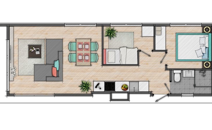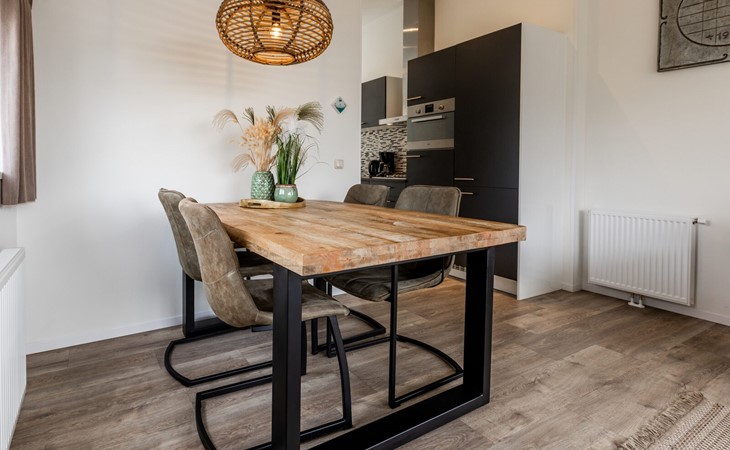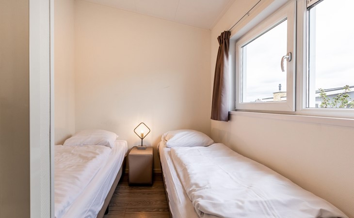 This 50m² vacation cottage for 4 persons has all the comfort you need. The chalet has two bedrooms, a bathroom with shower, toilet and sink, a spacious and cozy living room and an open kitchen with oven, dishwasher and enough space to put a delicious meal on the table. With nice weather, it is lovely to sit on the terrace of your cottage, equipped with an outdoor fireplace and garden furniture.