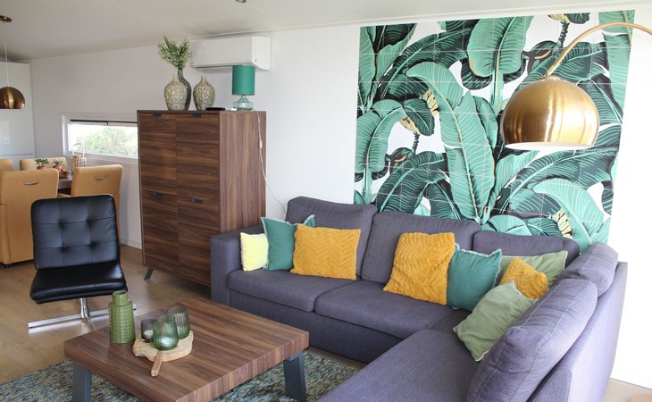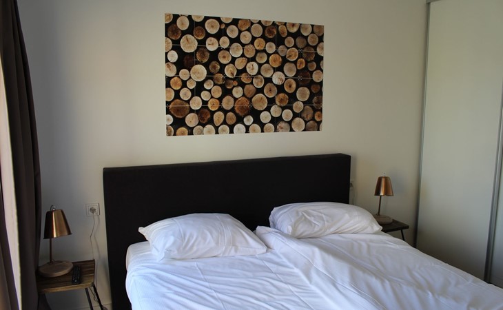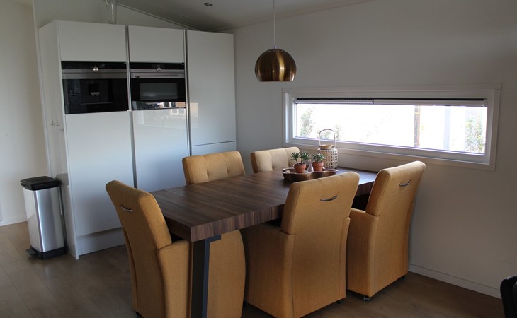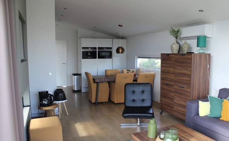 This stunning L-shaped holiday home of 65 m2 is equipped with all amenities: two bedrooms; bathroom with sink, walk-in shower, and toilet; and an additional separate toilet. Cooking will be a pleasure in the luxury kitchen complete with cooking area, combination microwave, dishwasher, and fridge-freezer. In the winter months, you can relax in the spacious and bright living room with see-through gas fireplace, while in summer, you can enjoy the spacious tiled terrace.