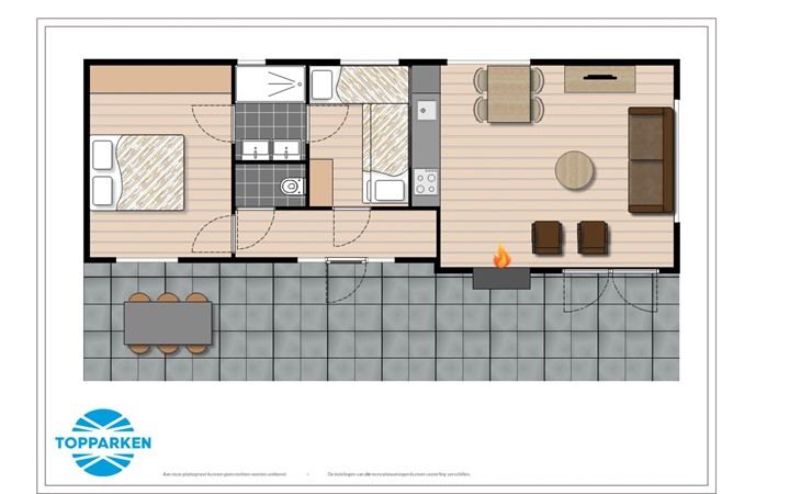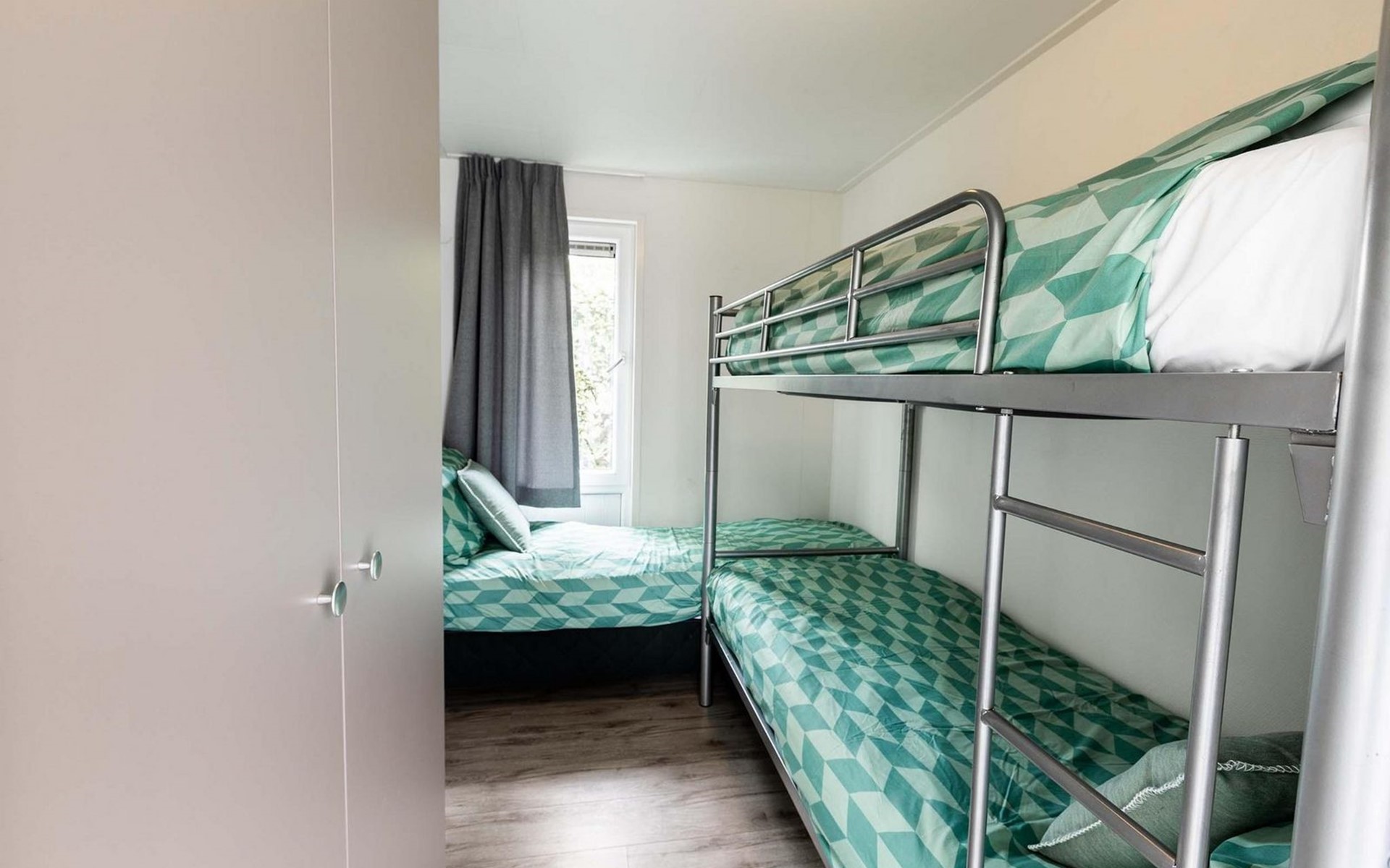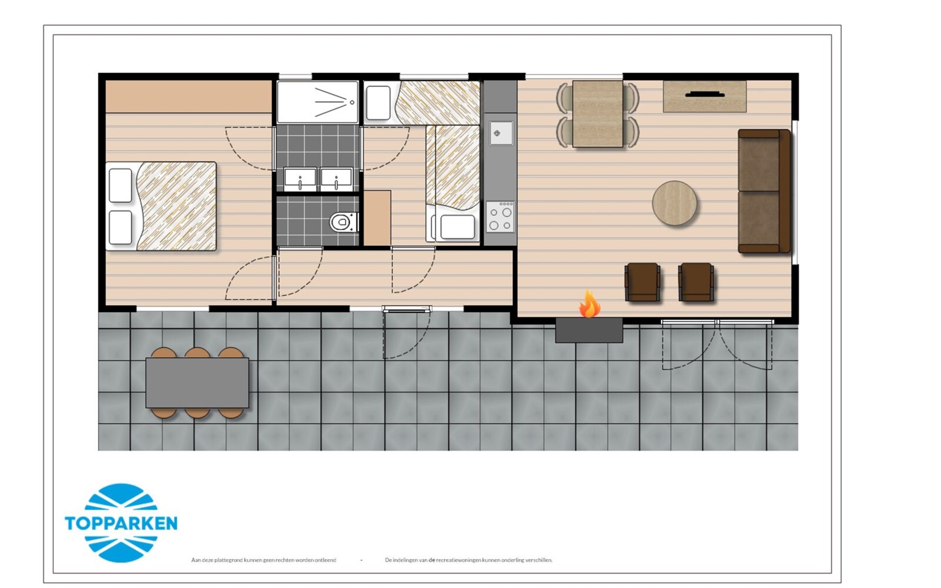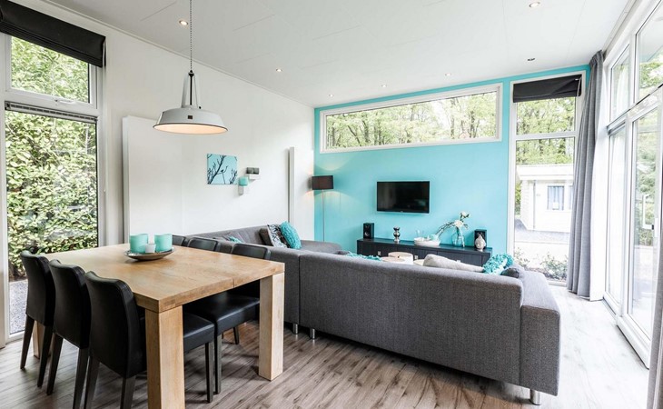 This comfortable basic holiday home is located on holiday park Landgoed de Scheleberg, located in the forests of Lunteren on the Veluwe. The park is situated in a unique location in the middle of the beauty of nature. This means that you will be able to both enjoy the holiday park and explore the beautiful nature. You can rent (electric) bicycles, mountain bikes or pedal cars from us. You can go on a trip with the entire family or your group of friends for example. The park itself also has a large number of facilities for all ages: from the outdoor swimming pool, the various sports and playing fields to delicious eating facilities. You will also find many facilities for the children, including a children's pool, the kids' club, Toppe Bob, our animation team as well as an entertainment program (during the school holidays).