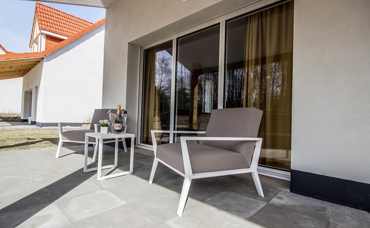 Enjoy a stay in Maison Ardèche, a comfortable detached apartment that can accommodate up to 6 people, providing guests with a usable area of approximately 90m2. Maison Ardèche has a spacious lounge with a stylish seating area and dining area. The patio doors open onto the covered patio with a stylish seating area where you can enjoy a bite to eat and drink. The accommodation has a spacious open-plan kitchen with modern conveniences. There is also a separate toilet.