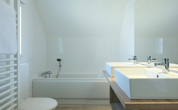 On the first floor, there are 3 spacious twin bedrooms. There is also a comfortable bathroom with a bath, shower, double washbasin and toilet. The ideal accommodation for a carefree stay near the beach.
