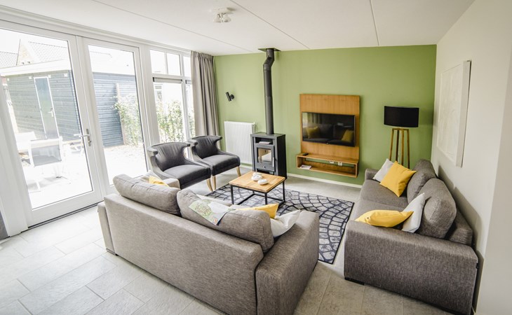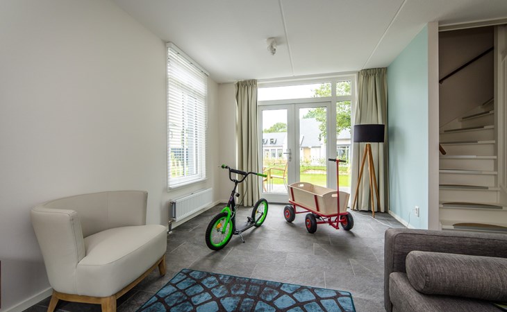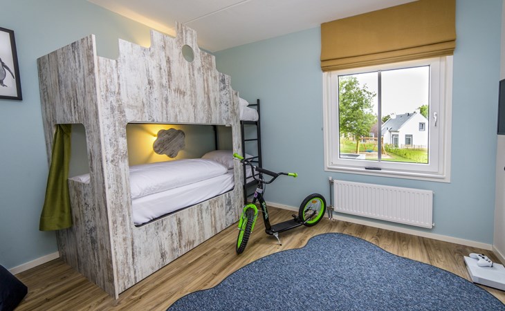 Stay with the whole family in this child-friendly semi-detached accommodation, located in the Kids Quarter. Herenhuis Luxury Kids is a chalet for 8 people with 4 bedrooms and 2 bathrooms, providing guests with a usable area of around 122m2. The accommodation is perfect for 6 adults and 2 children! Our Kids Chalets are situated in the family-friendly Kids Quarter at Dormio Resort Maastricht. This part of the resort is specifically aimed at families with young children and is enclosed by a low hedge with an entrance gate. The communal fenced play area, adjacent to the rear gardens of the Kids Chalets, provides a safe and fun place for your little ones to explore the playground equipment and play to their heart’s content with their new holiday friends. The Herenhuis Luxury Kids is also perfect for a multi-generational holiday with grandparents! The spacious lounge features a seating area and a television. There is also a dining area with dining table. The luxury kitchen is fully equipped with an American fridge, combi-oven, dishwasher, kettle, hob, toaster and Nespresso machine. From the lounge, there is access to a spacious patio with patio furniture, from where you can see the playground. There is storage area in the garden. There are 4 bedrooms, 2 twin bedrooms and 2 bedrooms with a children's bunk bed. The children's bedrooms also has a chest of drawers and a cot. There are also toys, including a Playstation, wagon and scooter, at your disposal. There are 2 bathrooms, one with a sauna, hot tub, shower, double washbasin and toilet. The other bathroom has a shower, washbasin and toilet. There is also a separate toilet. The accommodation has a washing machine for you to use. There are 2 parking spaces right next to the accommodation. You can also enjoy free WiFi during your stay. Pets are not allowed in this accommodation.
