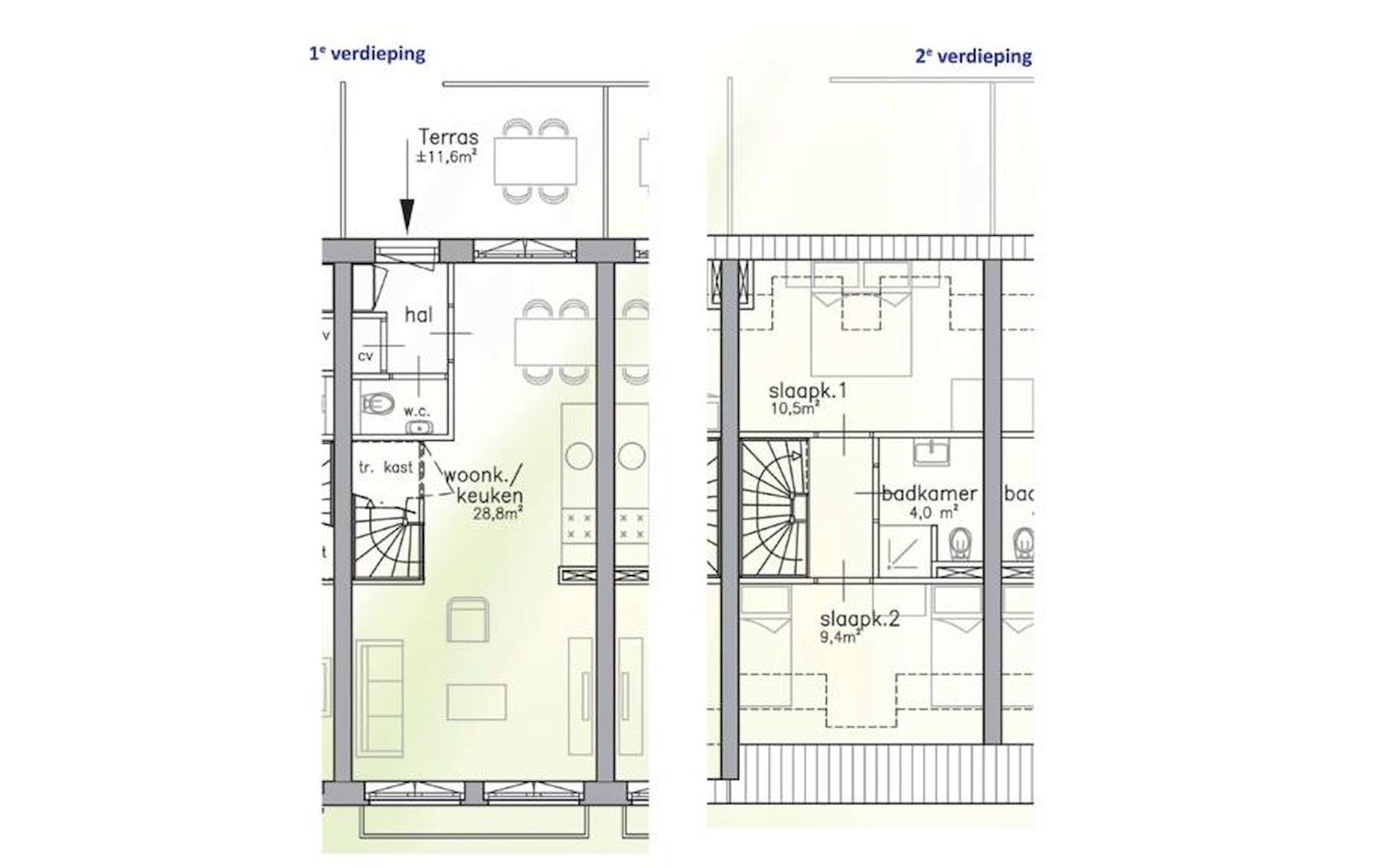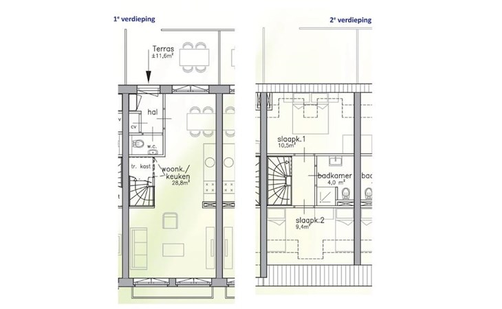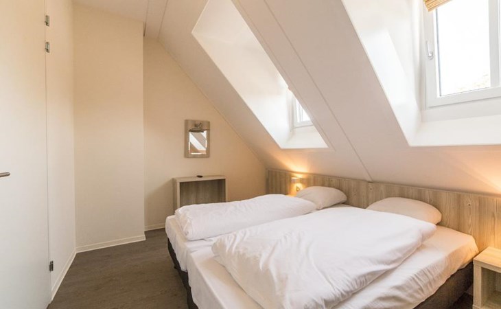 On the first floor, there are 2 twin bedrooms. Here you will also find the bathroom with walk-in shower, toilet and a washbasin. There is also a separate toilet. The apartment also features a separate storage room.