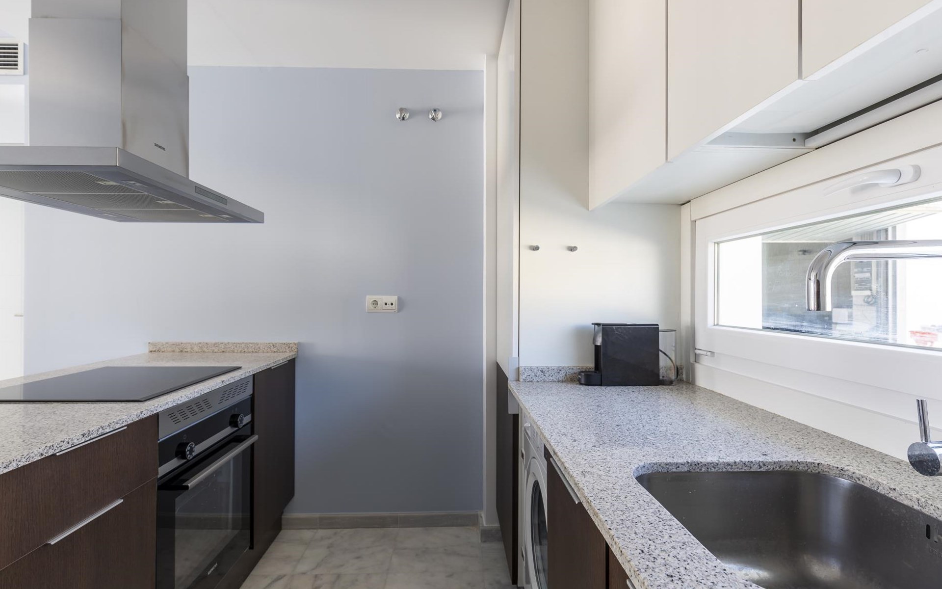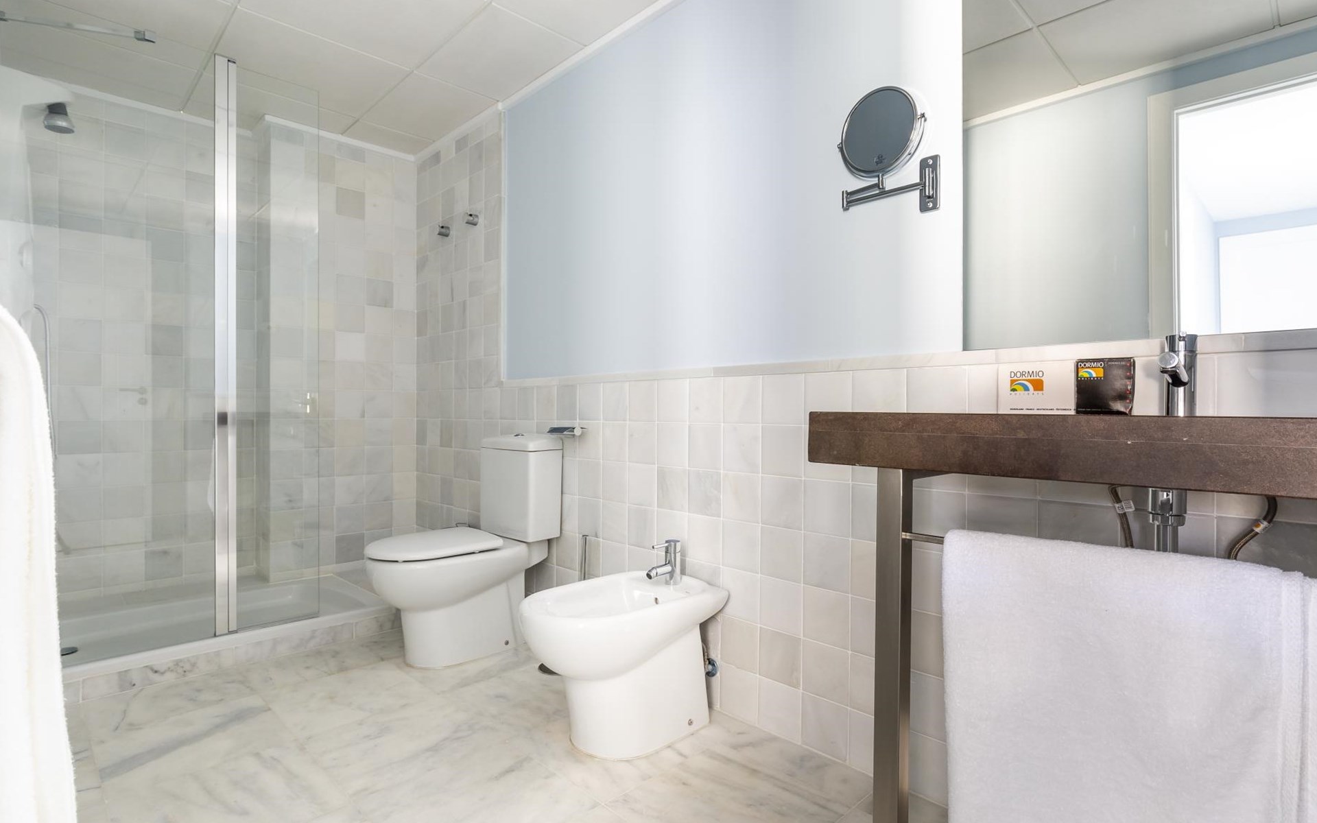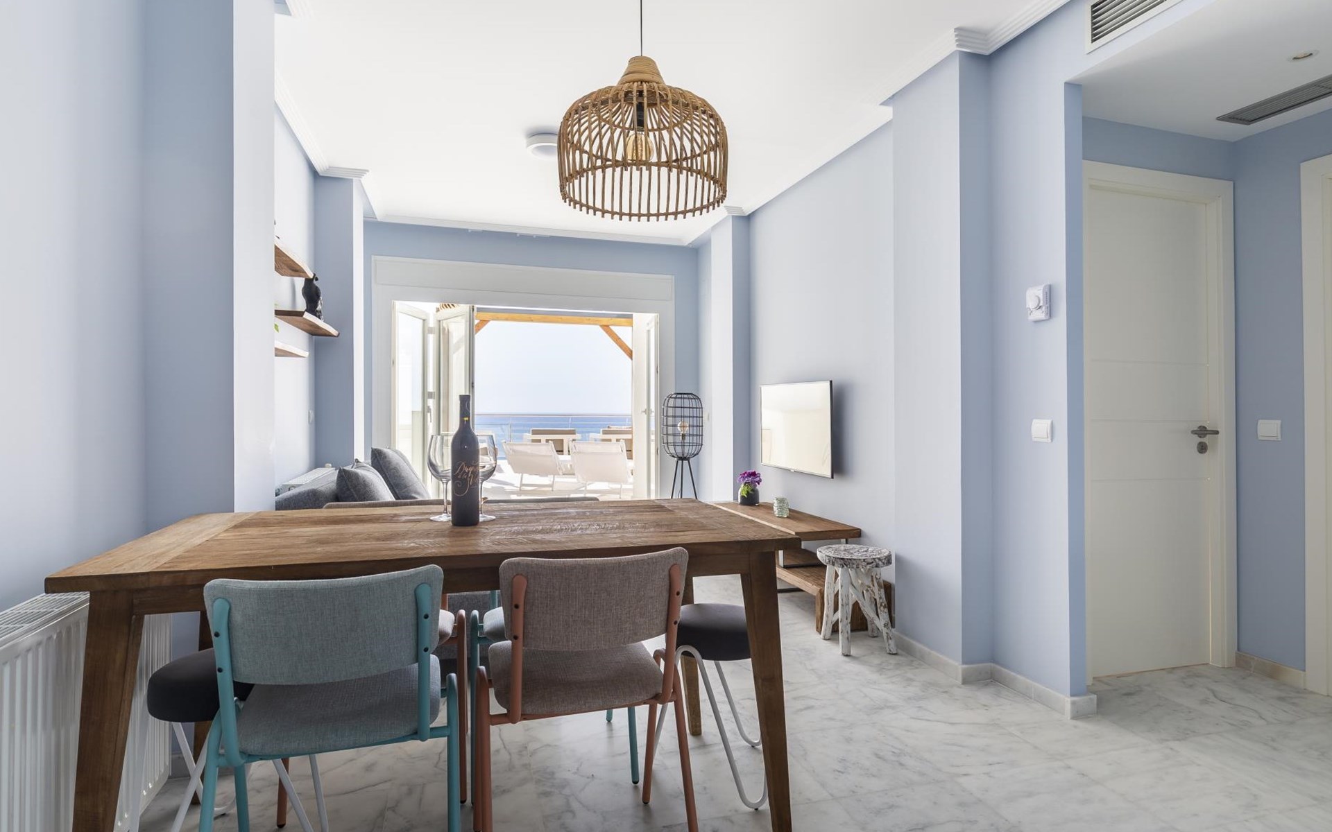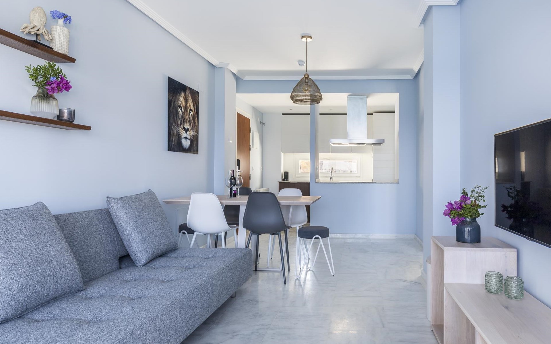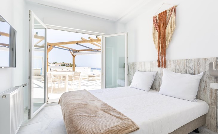 The apartment has two bedrooms, each with two single beds. The bedroom has an ensuite luxury bathroom, with a shower, toilet, bidet and washbasin. What is special about this apartment is that you have almost as much space outside on the terrace as inside. This is of course ideal for an apartment on the Costa Blanca! There are sea views from your terrace.