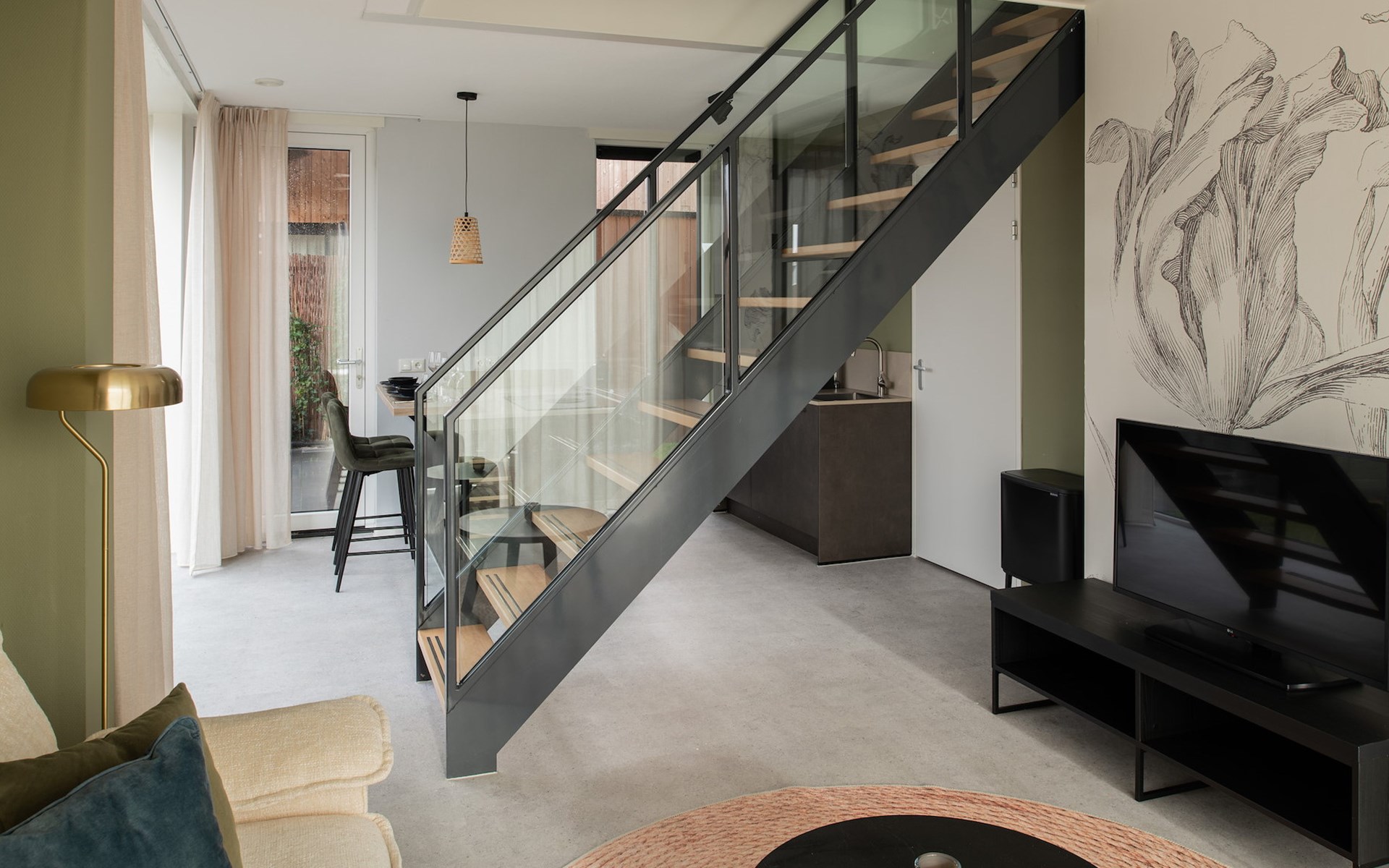 The living/dining room gives access to a secluded garden that offers you plenty of privacy. The garden has a spacious patio, barbecue and outdoor wellness for optimal relaxation. Fully unwind in your very own hot tub or sauna. There is also an outside shower.