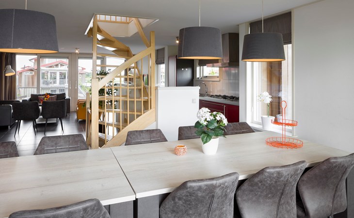 Villa Goudplevier Bubbelbad 10+2 at Summio Waterpark Zwartkruis is suitable for up to 10 adults and 2 children. This detached villa has six bedrooms and two bathrooms. The Goudplevier Bubbelbad 10+2 consists of three floors: a basement, a ground floor and a first floor.