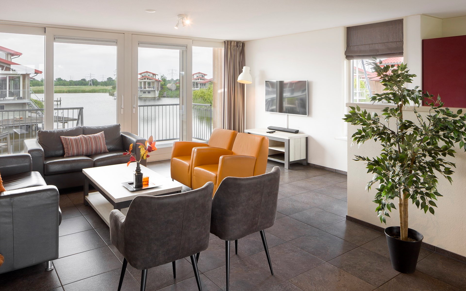 The villa is located directly at the waterfront and has its own jetty. In addition, the villa has a furnished patio and a veranda. There is an outdoor hot tub in the garden.