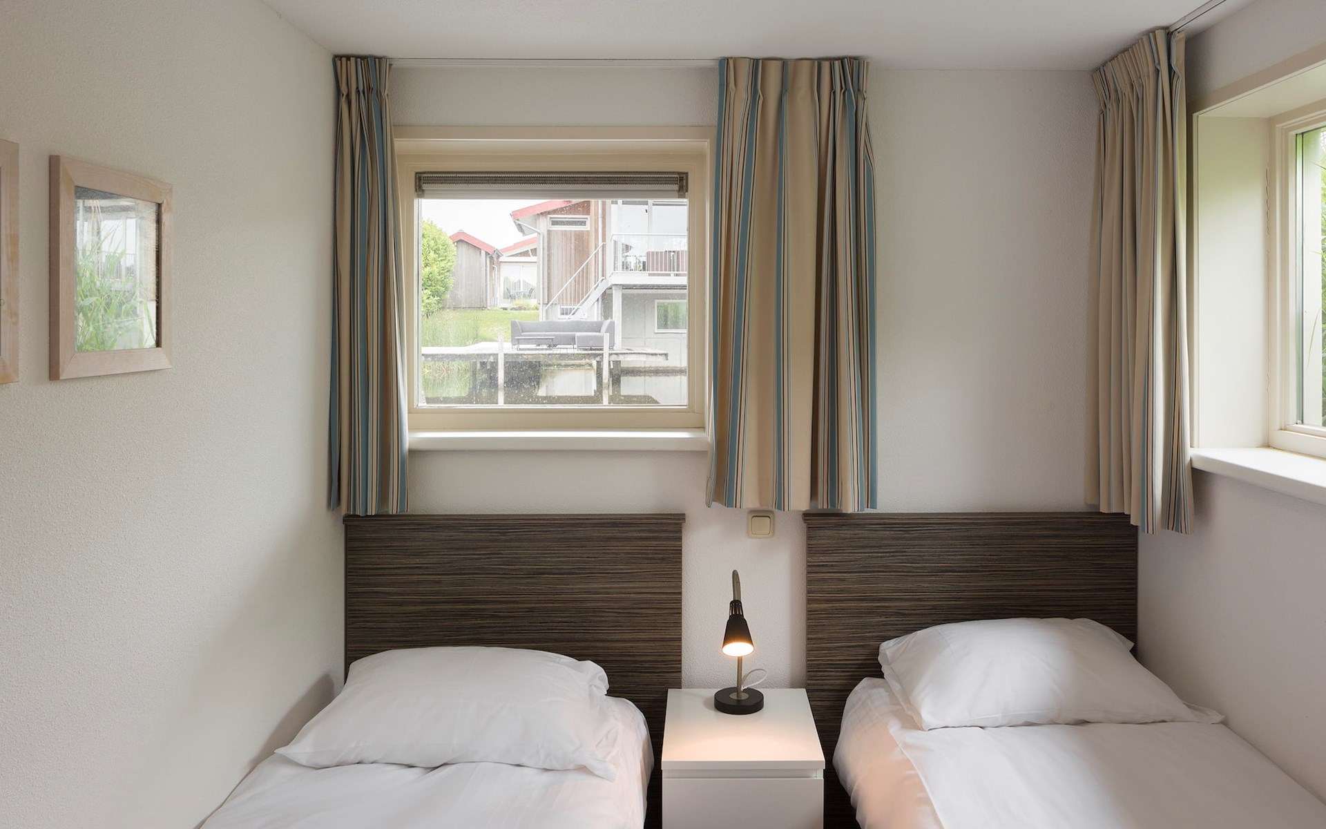 On the first floor are two bedrooms with two single beds each.