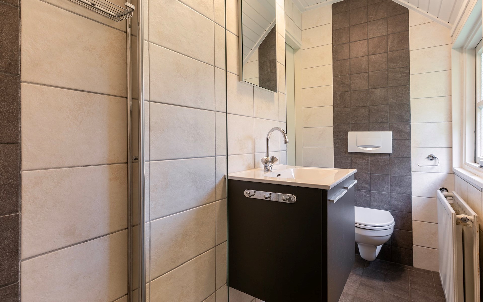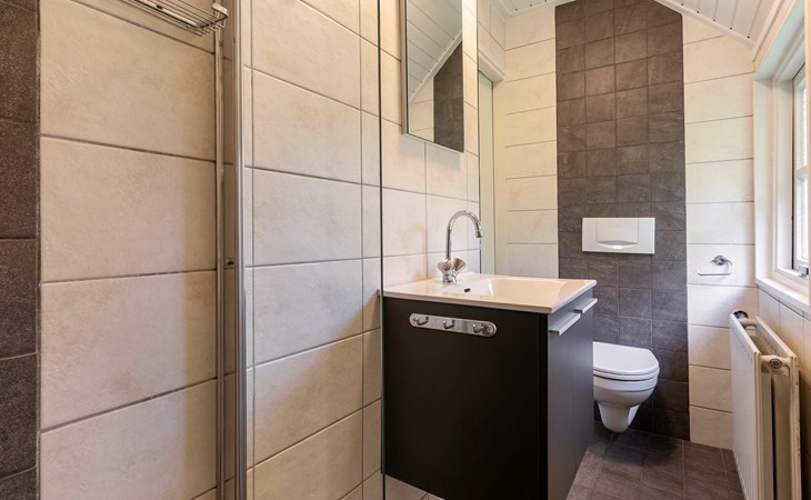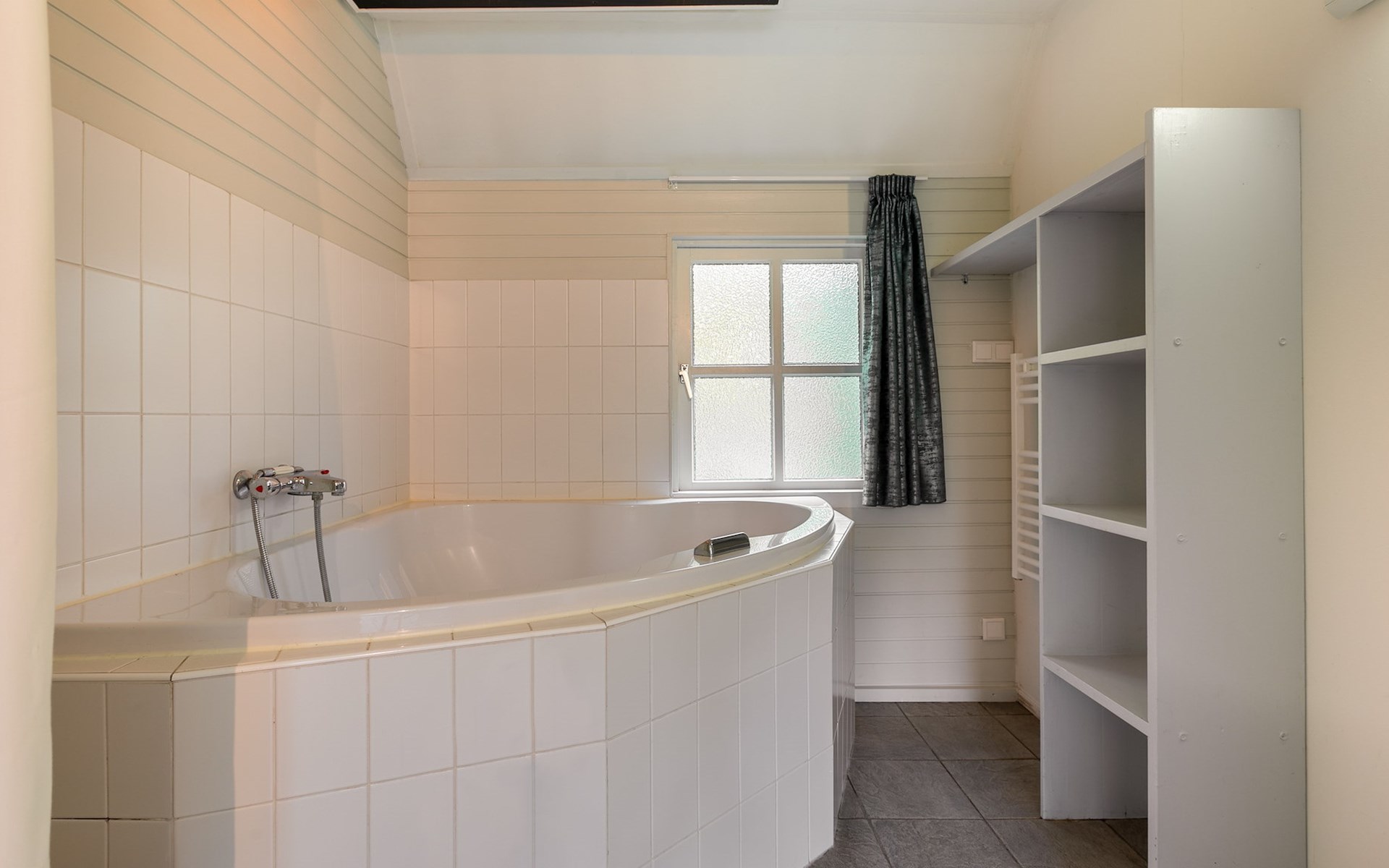 The bungalow has one bathroom and a space with a whirlpool bath. The bathroom has a shower, washbasin and toilet.