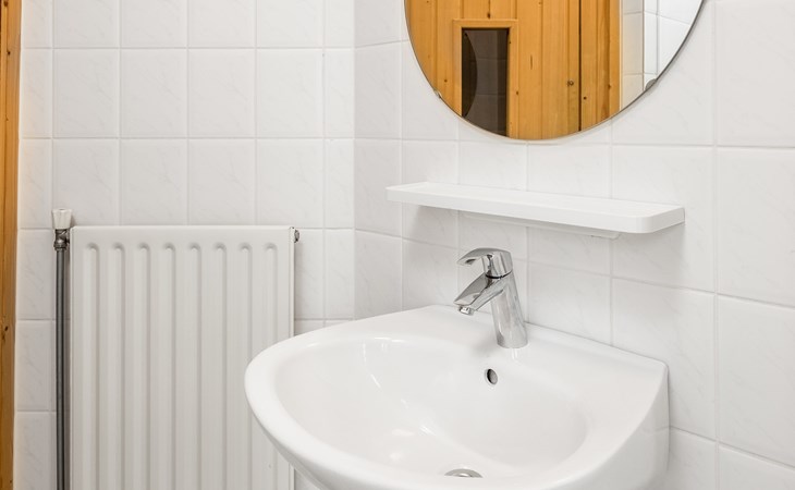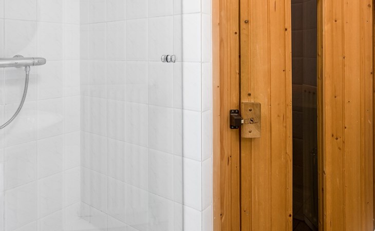 On the ground floor there is also one bedroom with two single box spring beds. The ground-floor bathroom has a shower, washbasin and a traditional sauna. There is also a washing machine and a separate toilet.