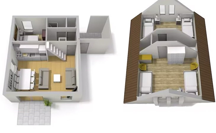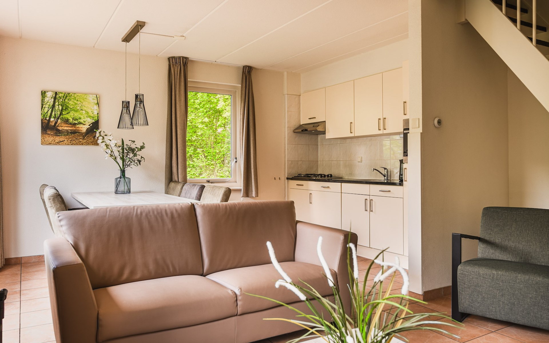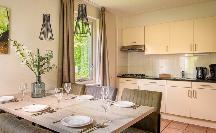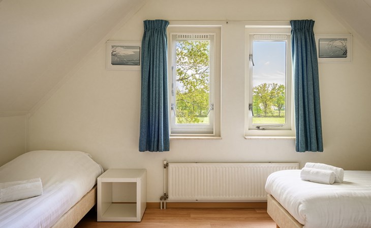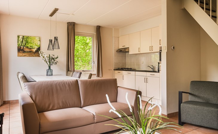 The detached bungalow Comfort 6 is suitable for a maximum of 6 persons. This bungalow at Summio Bungalowpark Het Drentse Wold has three bedrooms and one bathroom, spread over two floors.